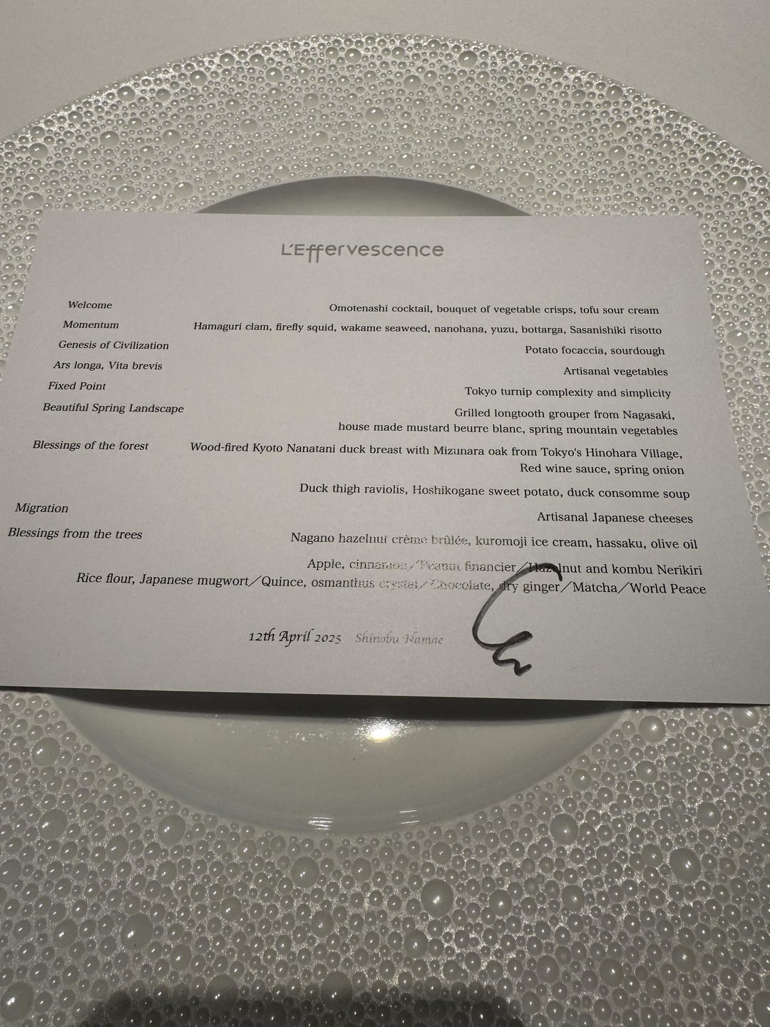 Ate at L'Effervescence in April. This was a highly anticipated lunch given that it holds 3 Michelin stars and a Tabelog Silver award.