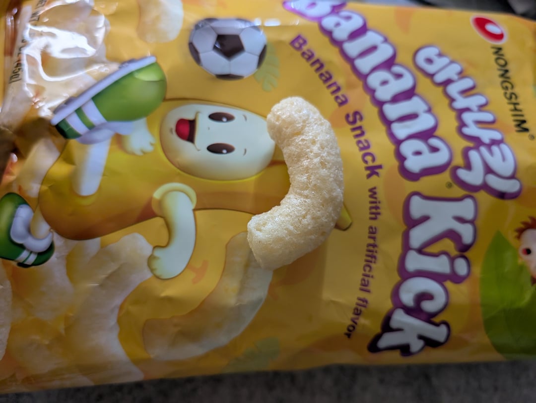 Since then I've been thinking about it but now I can't stop seeing banana kick. Saw it at the new Korean donut cafe in Santa Monica. Saw the giant bag of banana kick someone gave IU. I think I need it in my life. The ones in the normal bag are true to size on the packaging so having a foot long sized banana kick doesn't sound too bad.