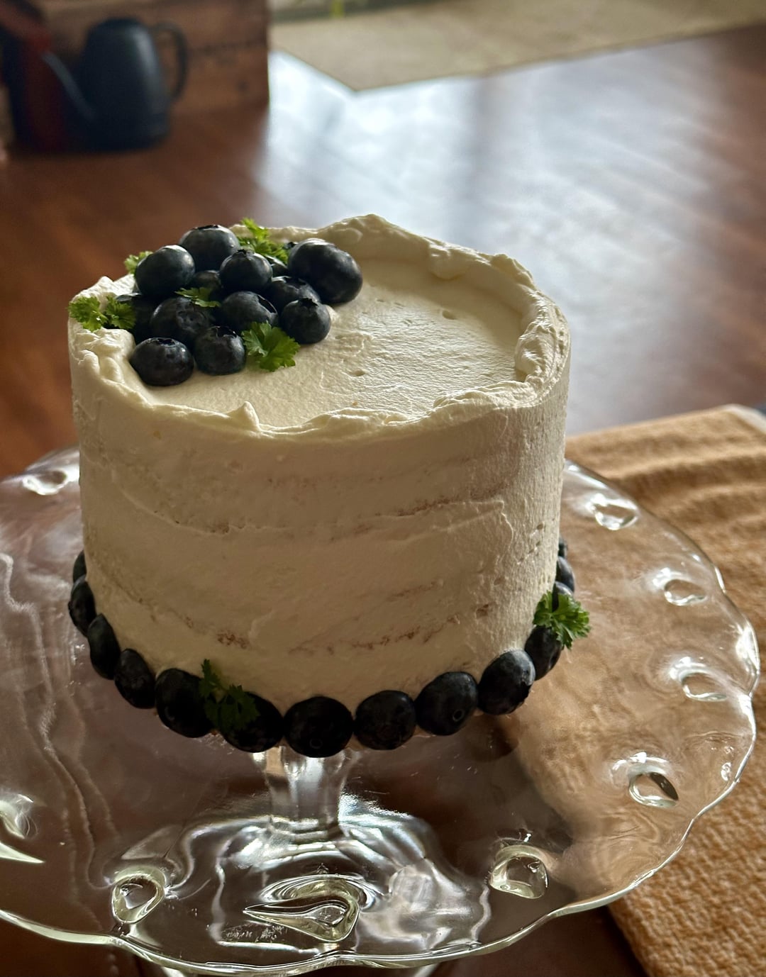 Simple white chiffon with a vanilla buttercream and fresh blueberries 🫐