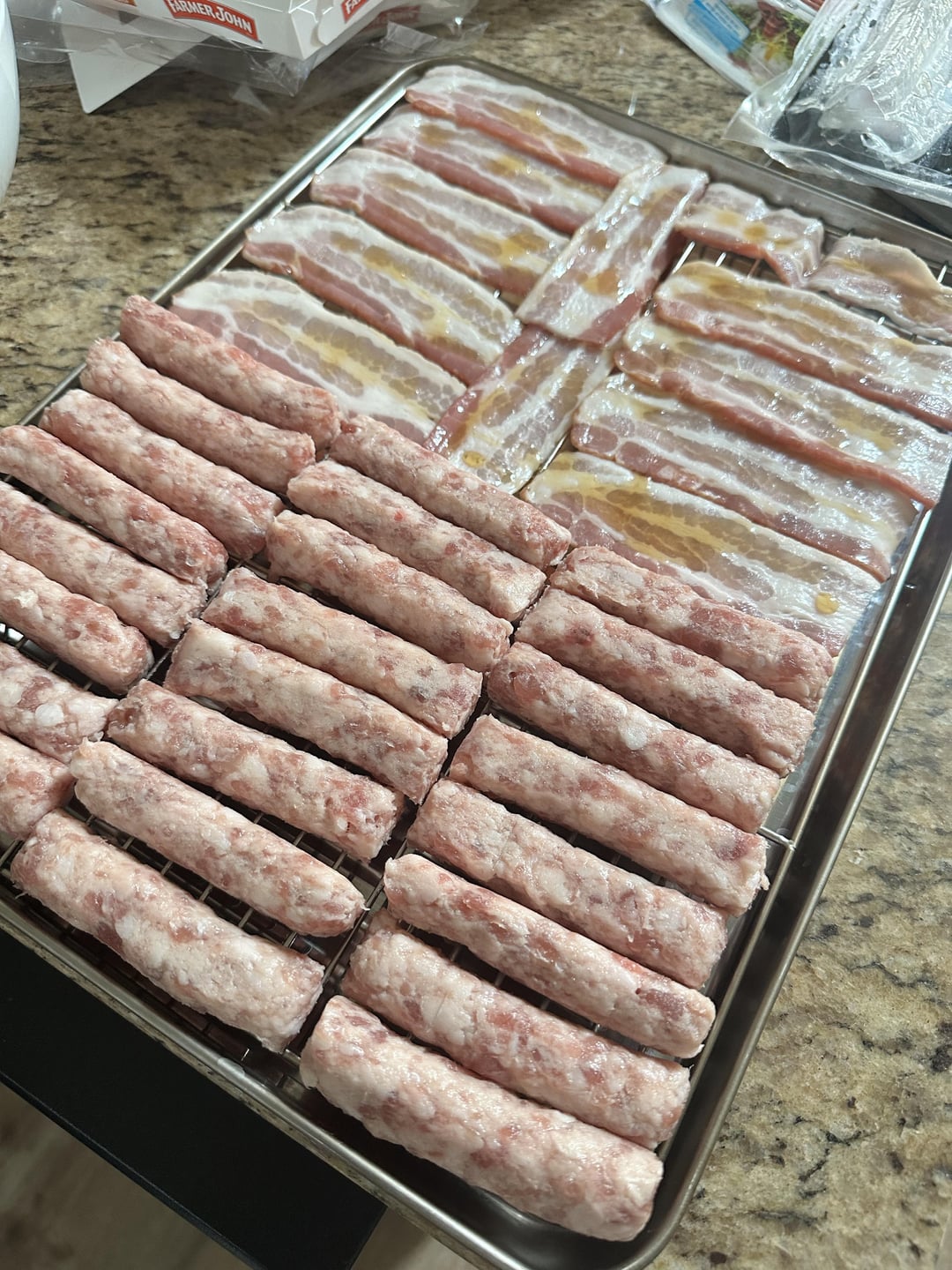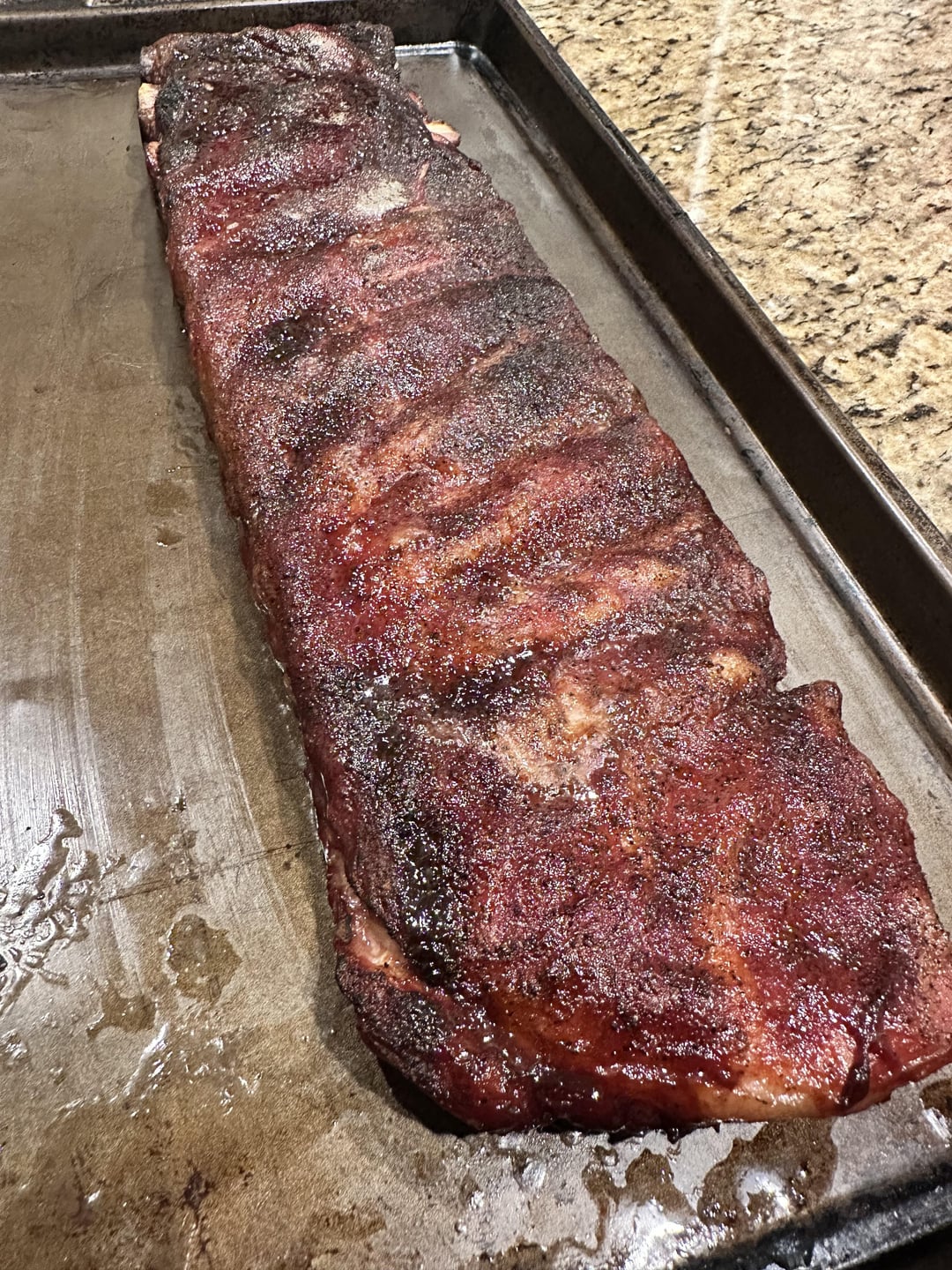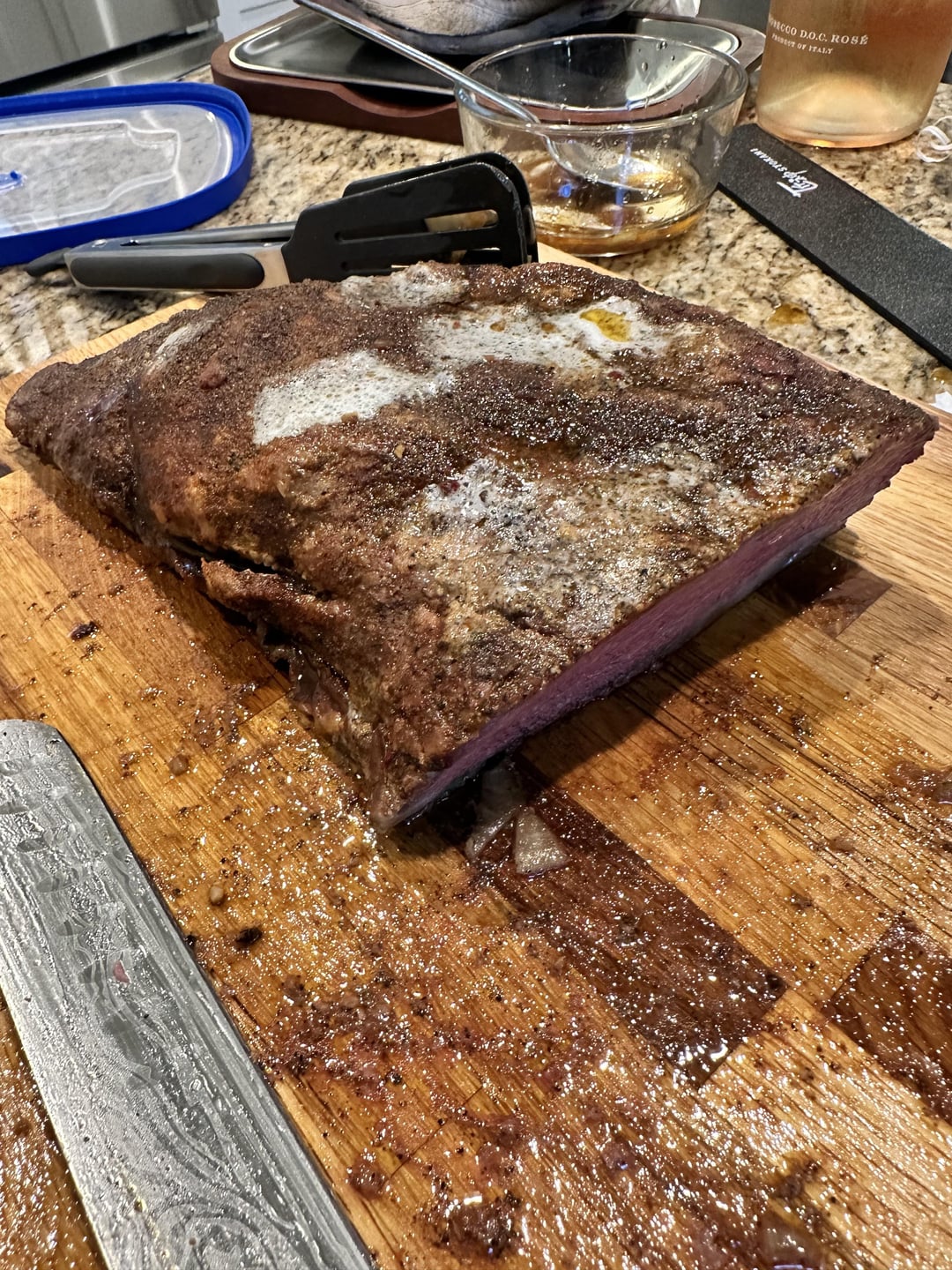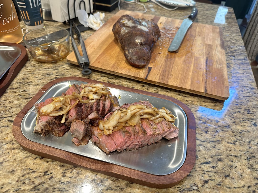 👌 Tritip smoked for 7 hours, it was late so it fridged it and put it back on the smoker after a wrap with onions, butter, and garlic. Let is sit at 225 for a bit to come back up to temp and cook while I let the bacon and sausage soak up some flavor.