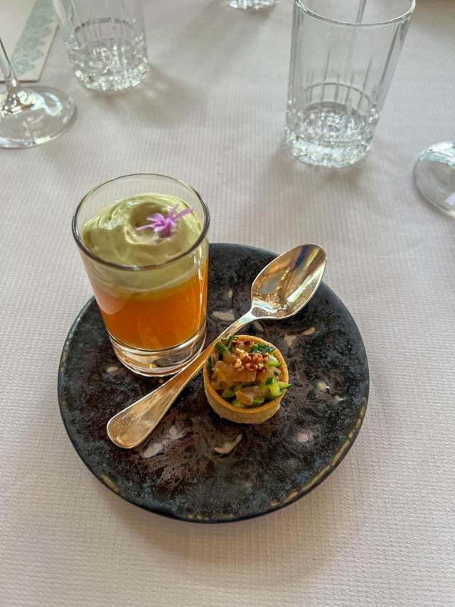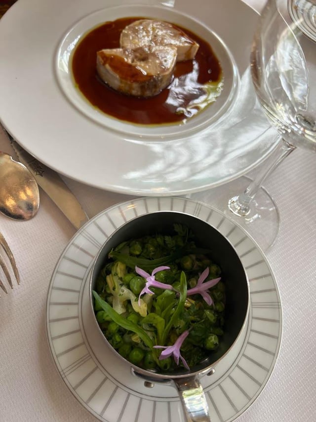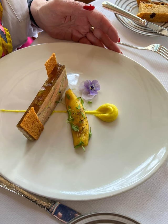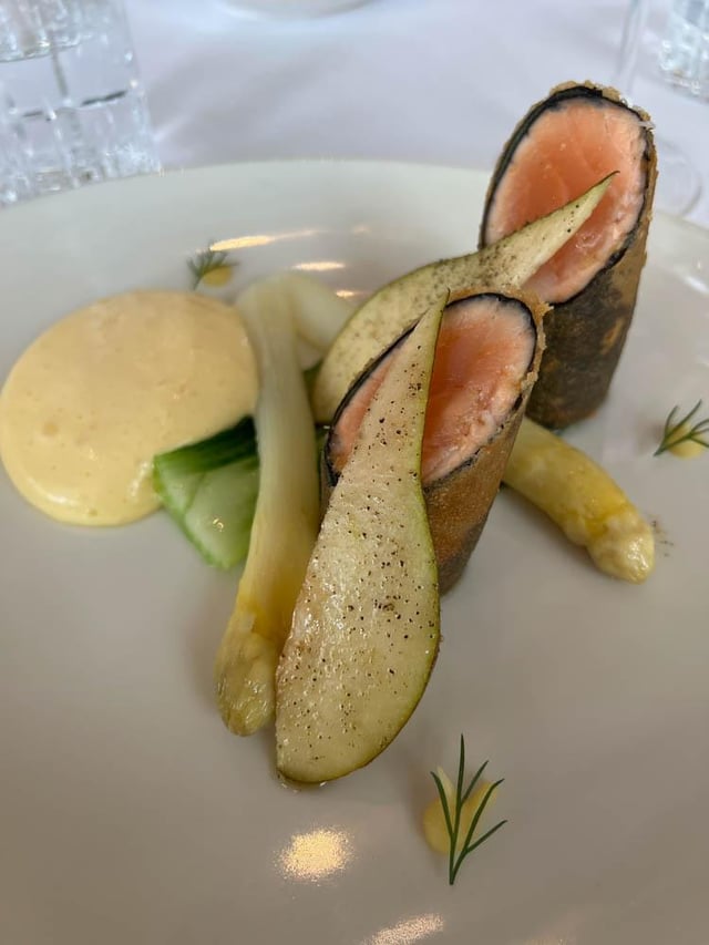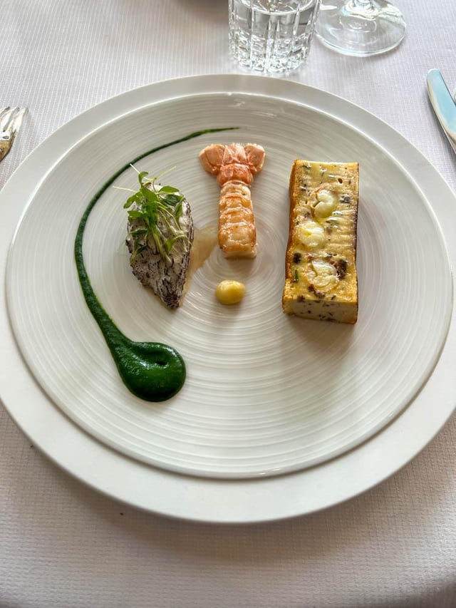 The highlights were the langoustine and foie gras first courses and the salmon dishes and the strawberries dessert.