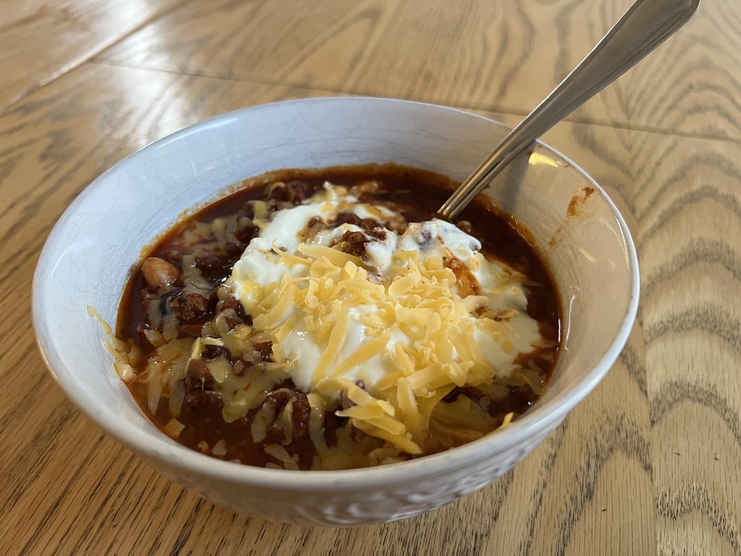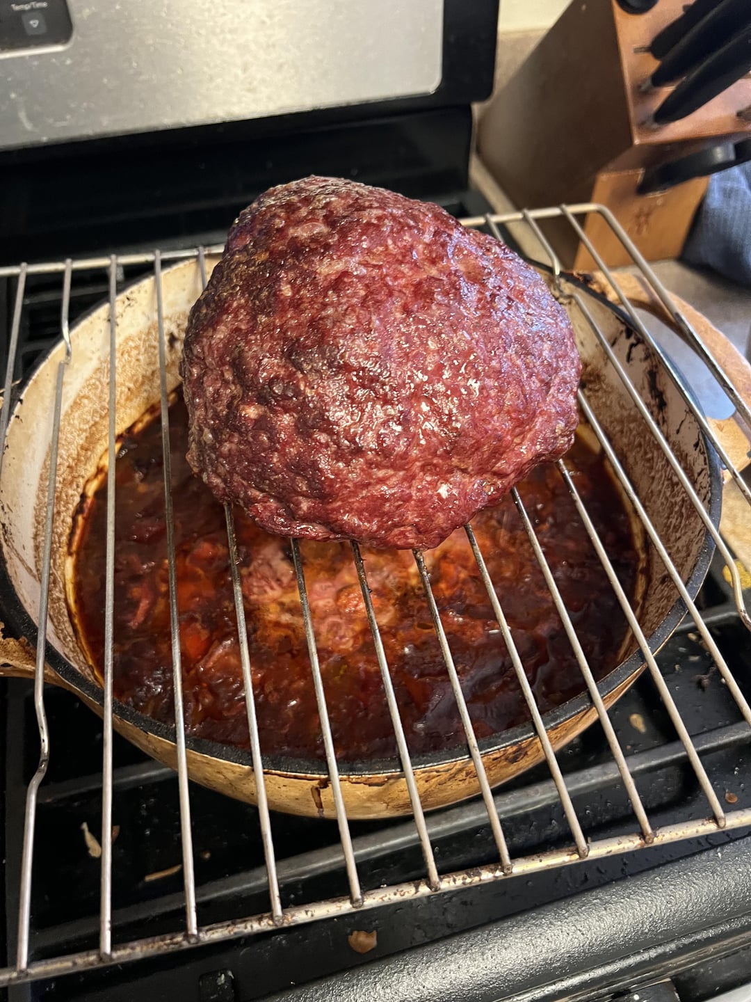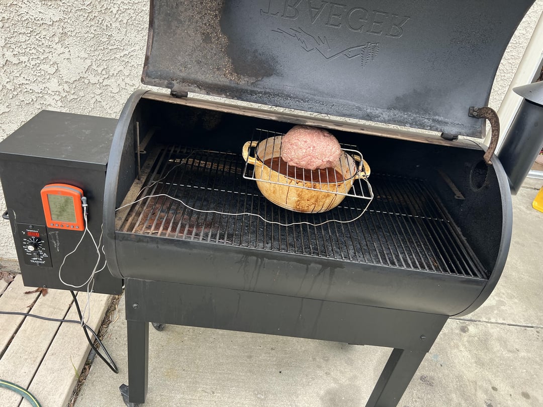 Smoked at 250 for about 3 hours until beef hit 160F. I broke the beef up into the chile and simmered for another hour or so and got some pretty bomb chile!