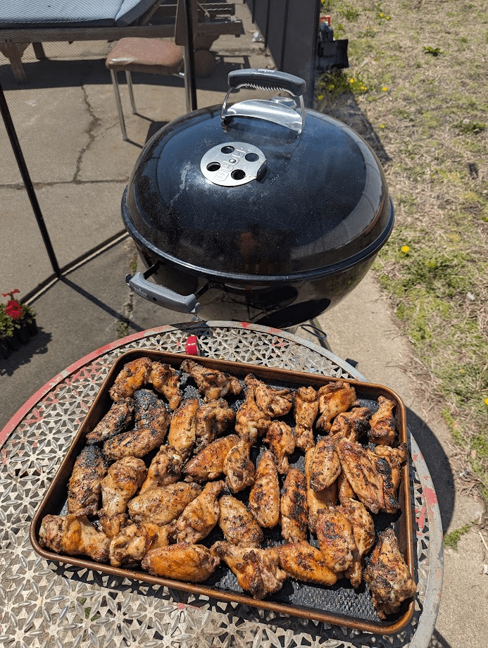 Cooked indirect for 40 minutes, flipping at 20 minute mark. Toss in sauce and grill for another 10 minutes. Finished over direct heat to get a nice char that my wife likes.