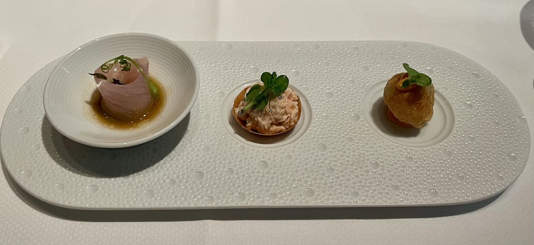 – Canapés (glad to see they’ve finally abandoned the salmon rillettes, which were excellent but needed a refresh)