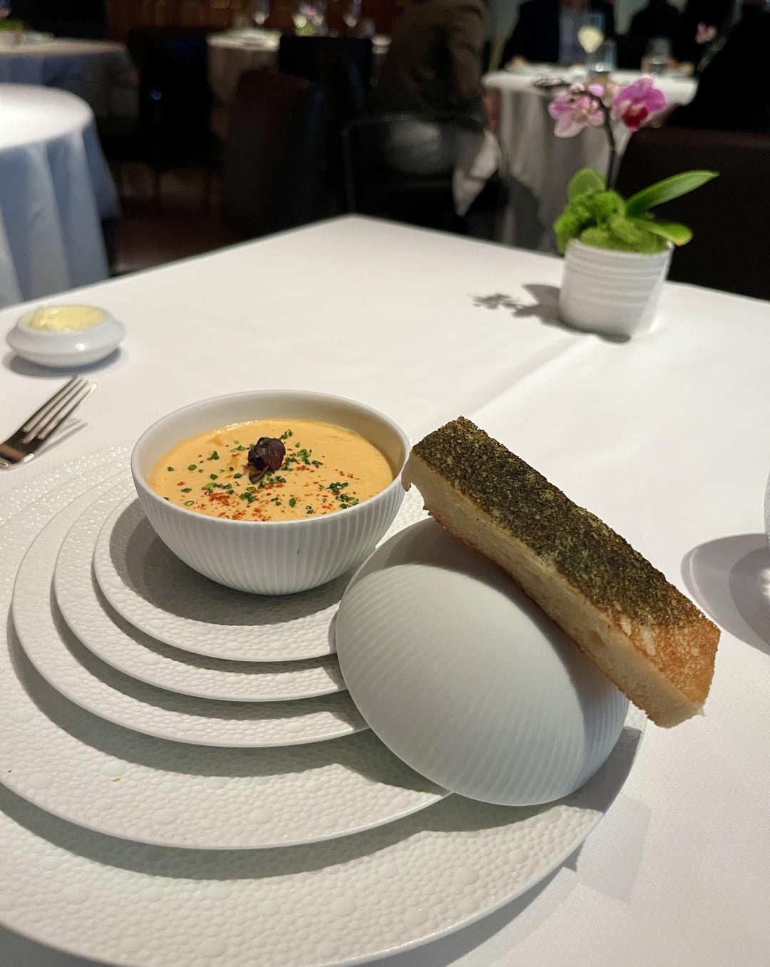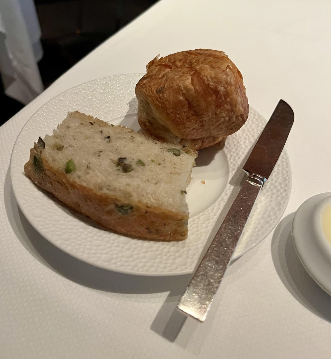 • Appetizer course selection (I chose the uni “soufflé” with white asparagus, espelette pepper, and nori-dusted brioche. Ridiculously good.)