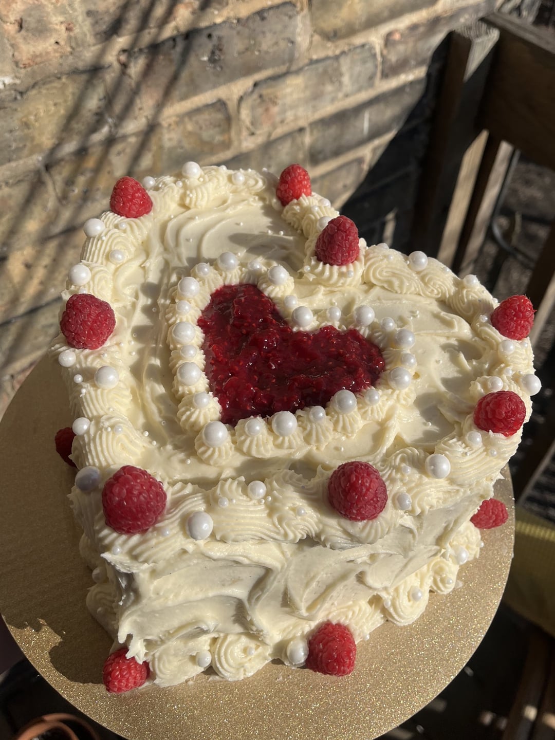 Baked my heart out! ❤️ This Almond Cake with homemade Raspberry Compote & silky Almond Vanilla Bean Swiss Meringue Buttercream.