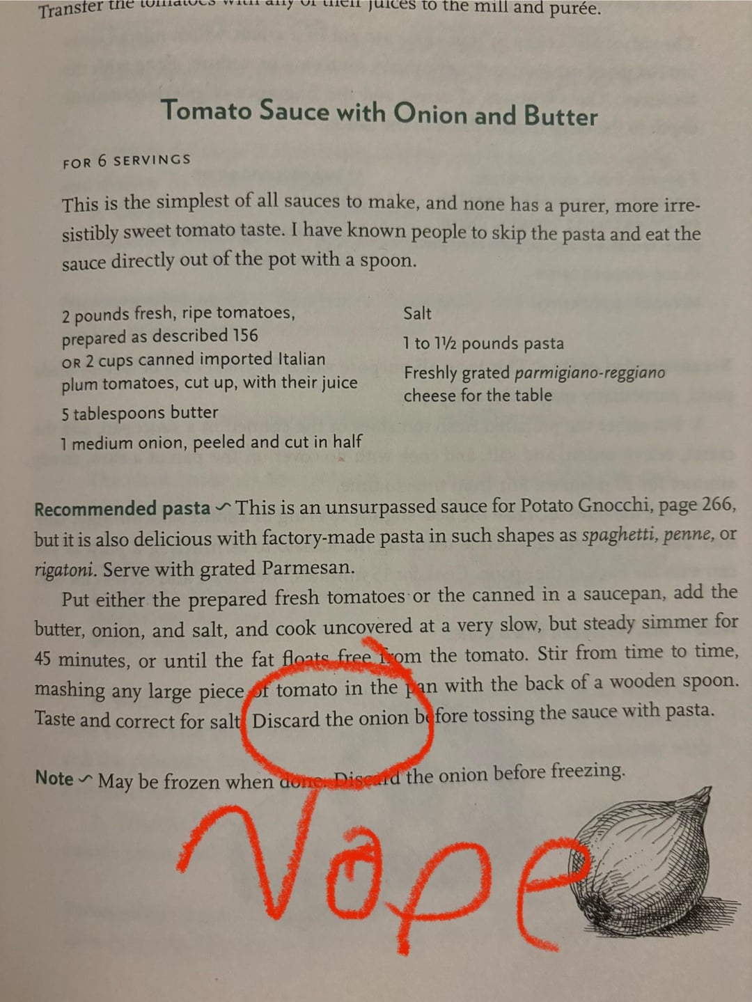 LOL can you imagine an old Italian grandmother cooking her family dinner *and throwing away onions*? Ridiculous.