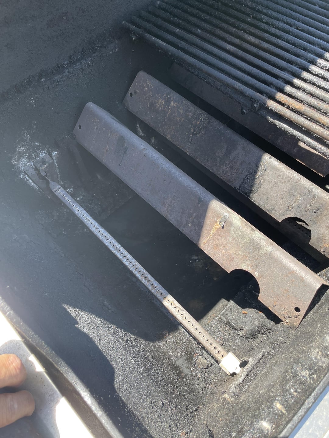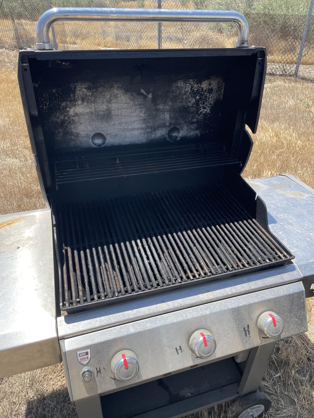 It looks ready for some gas and useage. Those are stainless grates by the way, just need heat and a brush. Order some doors and badge for that right side table and get another 10+ years of life out of it
