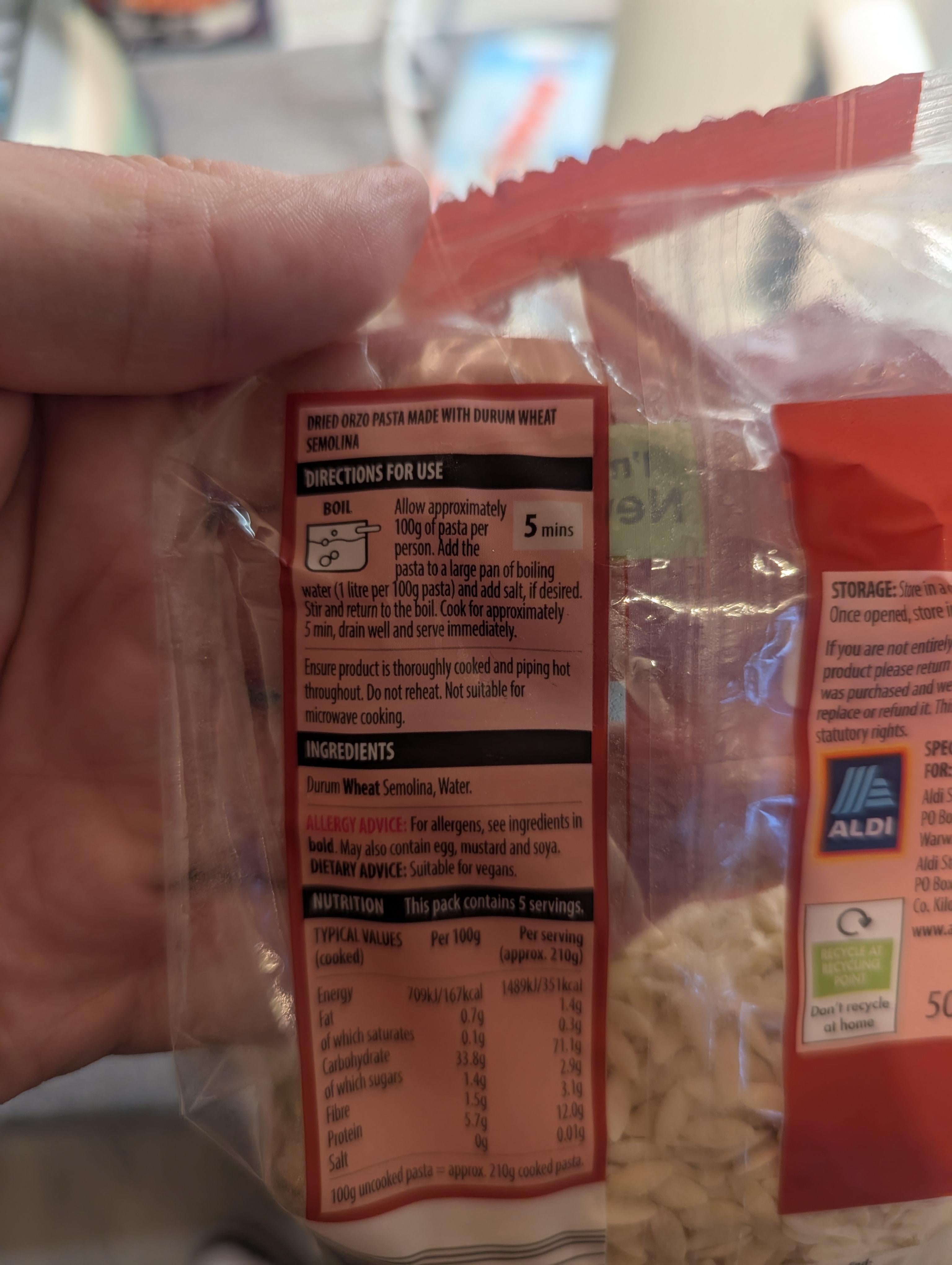 I've never cooked Orzo pasta before. Do these packet instructions make sense? 100g per person and 1 liter of water per 100g. Seems like a hell of a lot of water.by UBUYDVD Write A CommentYou must be logged in to post a comment.