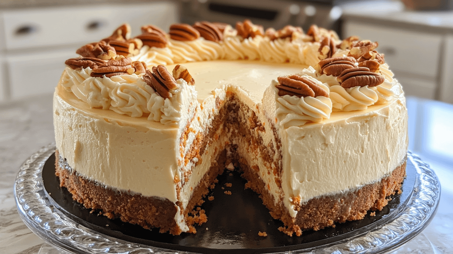 Recipe: https://freshlymaderecipes.com/carrot-cake-cheesecake/