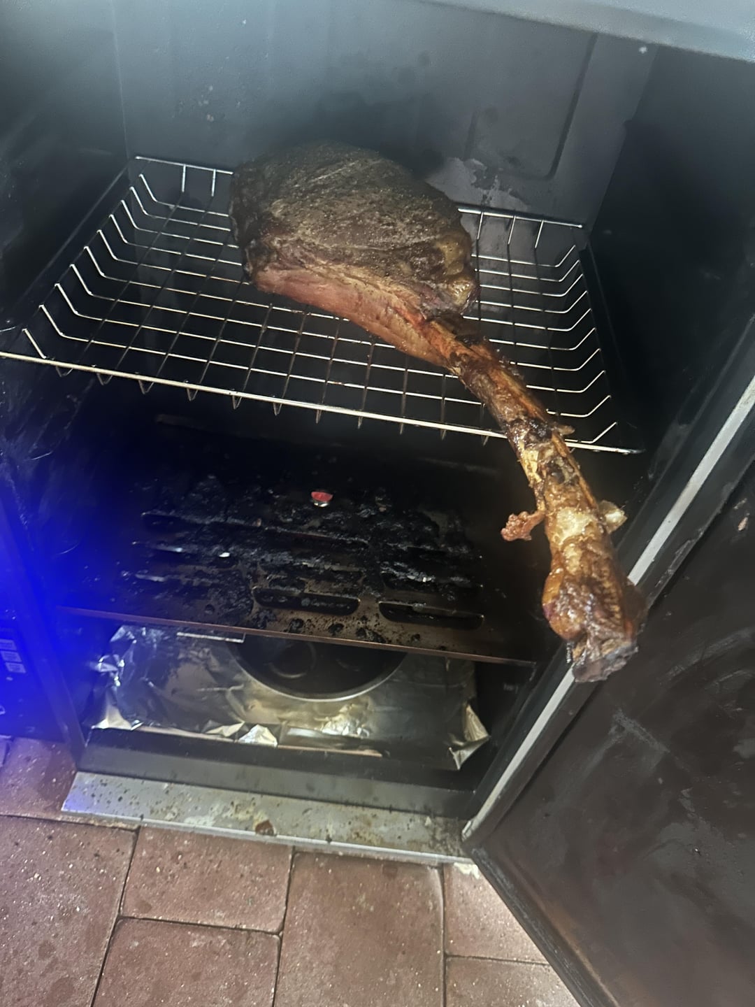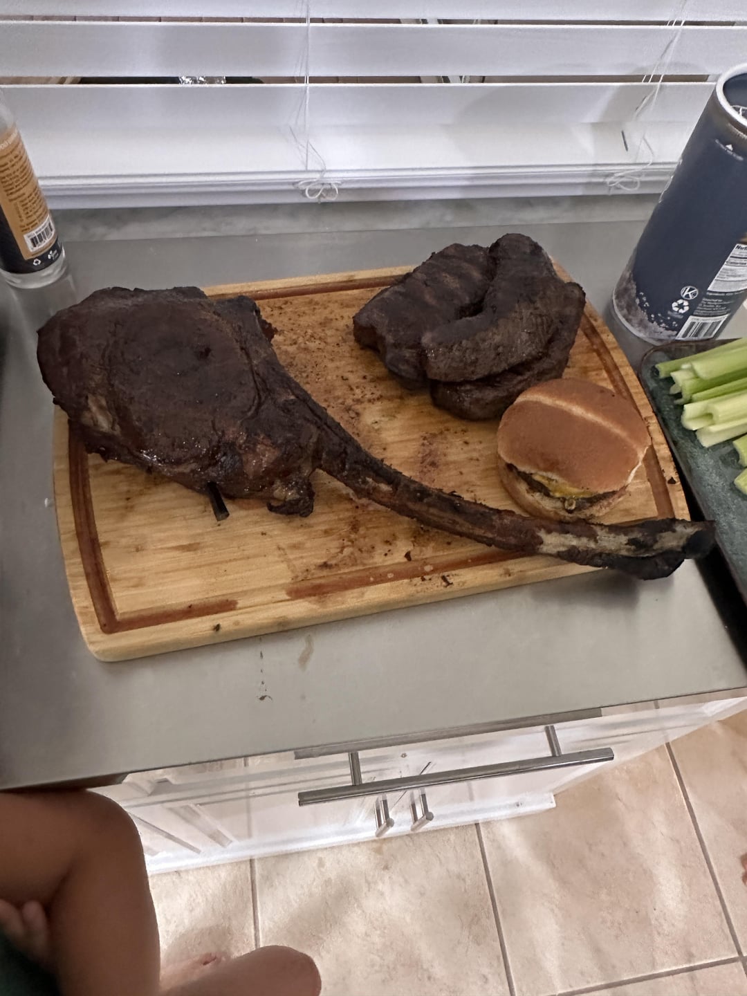 Tomahawk looks great. A good medium-well—I’m guessing you like it that way. I’m a rare to medium-rare type, and actually sent back a tomahawk in a restaurant that was medium-well. Felt guilty about it.