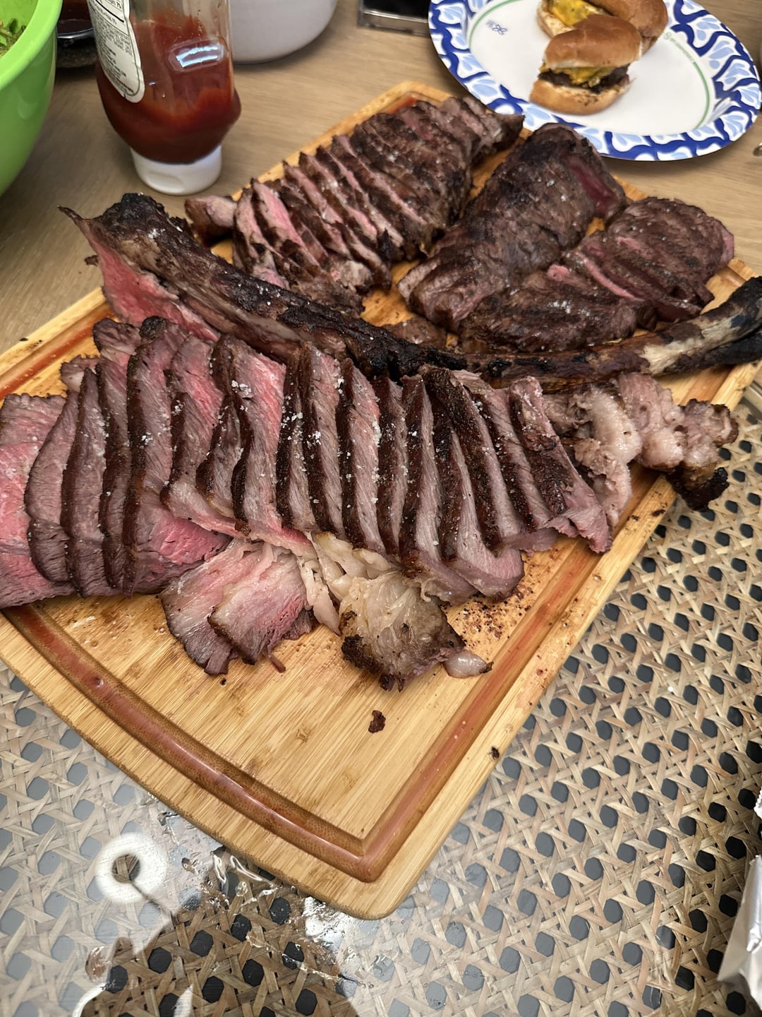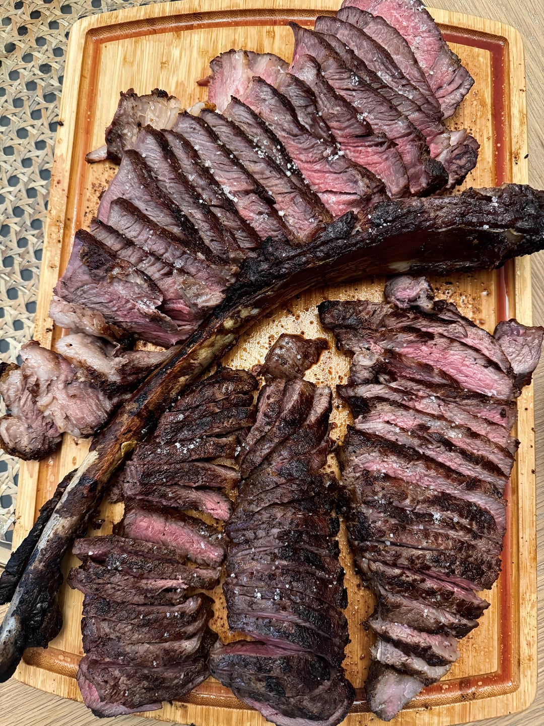 Grilled up two picanhas, a NY strip and a 4lb smoked and seared tomahawk. Everything was about 130-140 internal rested