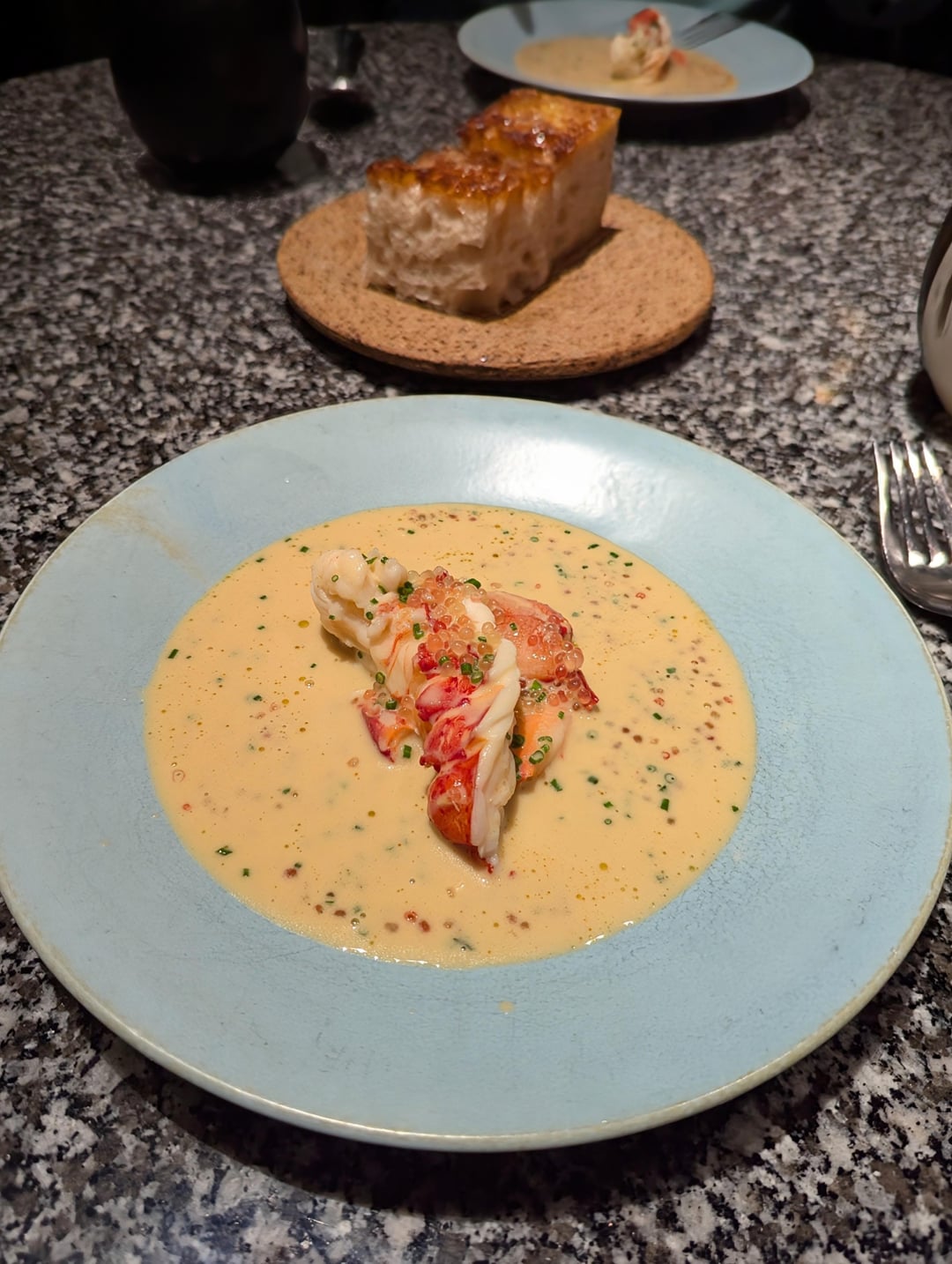 Bread was sourdough focaccia with a very crispy fried edge. I think it was fried in cultured butter? So delicious.