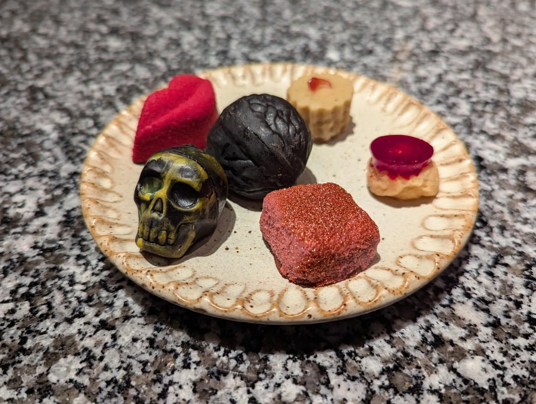 To be honest I don't remember most of the petit four. The skull had Vegemite caramel which was pleasantly interesting