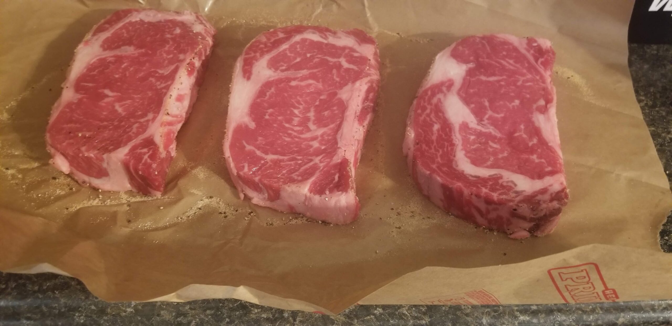 Salt generously and put in fridge for 3-5 days, flipping daily. This will drive out a lot of water in the fibers which is just filler that will run out when cooked and cut anyway. It’ll condense the flavor into a smaller package also. Take out of fridge, season with rosemary and thyme, seal up vac seal bag, SV @ 135 for 2-3 hours. Take out, pat dry and let rest for 30 minutes while you get your grill or cast iron red hot. Sear at around 1 minute per side, don’t forget to render and crisp up the fat on the sides. Put a pat of butter on top of each, cracked pepper, and cover with foil, let rest for another 15-20 minutes. Enjoy!