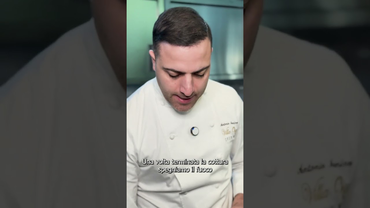 Risotto con funghi porcini, una fontuta al carmasciano e dressing alla Neto. Iniziamo a tostare il riso. Io inizio quindi a secco. Quando si arriva a una temperatura che non riusciamo a mantenere il risotto tra le mani, quindi in quel caso ovviamente è cotto e iniziamo con l’aggiunta dei liquidi. Bisogna soltanto ricordarci di metterlo un dito sopra al risotto e poi bisogna coccolarlo con eh una fiamma molto lenta. Mentre il risotto va con la cottura io vi faccio vedere un po’ come si fa la fonduta. Quindi 200 g eh di panna che andiamo a riscaldare, poi dopo abbiamo l’aggiunta. In questo caso questo carmasciano, un pizzico di pepe, un po’ di sale. Una volta passata al mini pinner sarà molto cremosa. Per dare colore e vivacità al vostro risotto fare un estratto di funghi porcini disidratati. Una volta terminata la cottura, spegniamo il fuoco e quindi siamo pronti per la mantecatura. Ci aggiungiamo i grassi, quindi in questo caso del burro di Normandia, il nostro eh formaggio carmasciano, i funghi porcini che l’abbiamo precedentemente saltati, un po’ di pepe, del sale. Finiamo con il nostro olio aromatizzato a rosmarino e all’oro. Ora andiamo con l’impiattamento. Ci versiamo il riso, sbat un po’, mettiamo i nostri funghi porcini. Poi mettiamo la nostra fonduta, mettiamo il nostro ristretto di funghi porcini. Togliamo il coppapasta e aggiungiamo il nostro dressing, il nostro olio profumato alla neto. Un tocco di colore con questi fiori di rosmarino. E infine aggiungiamo la nostra polvere di tarallo al finocchietto.