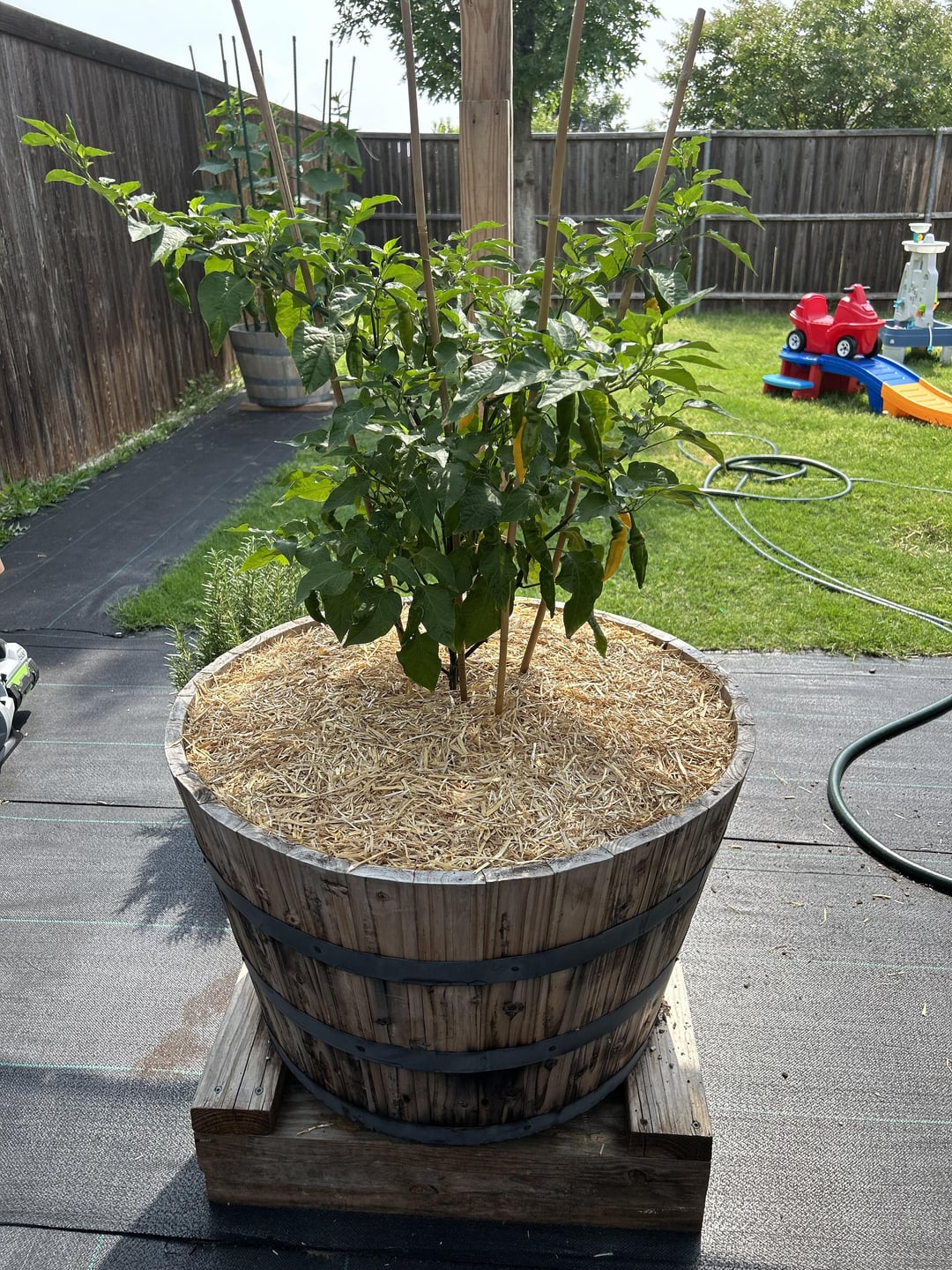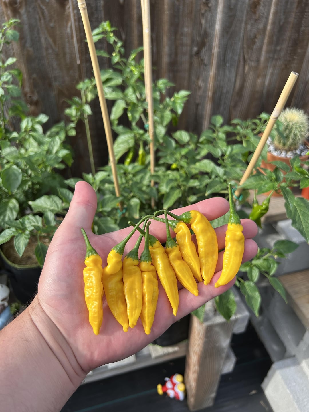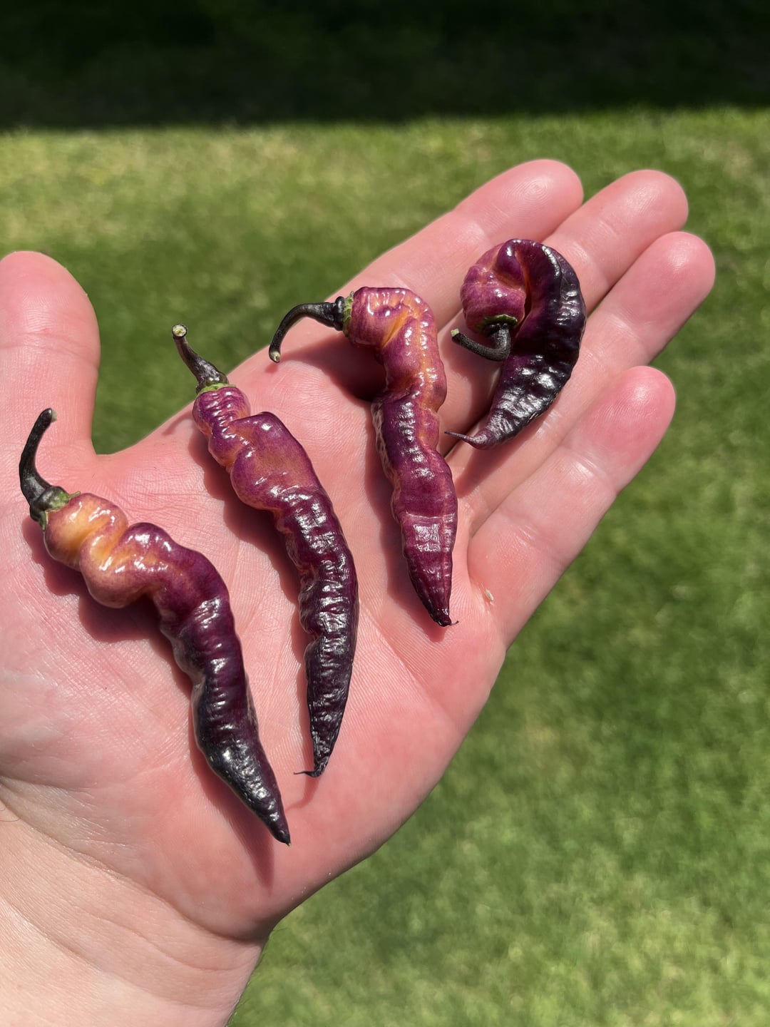 Loving the lemon drops! Jess purple peach is hot as hell and pretty cool looking. May have picked those a tad early. Lemon drop plant went into the whiskey barrel to see how large I can get it this season. 🌶️