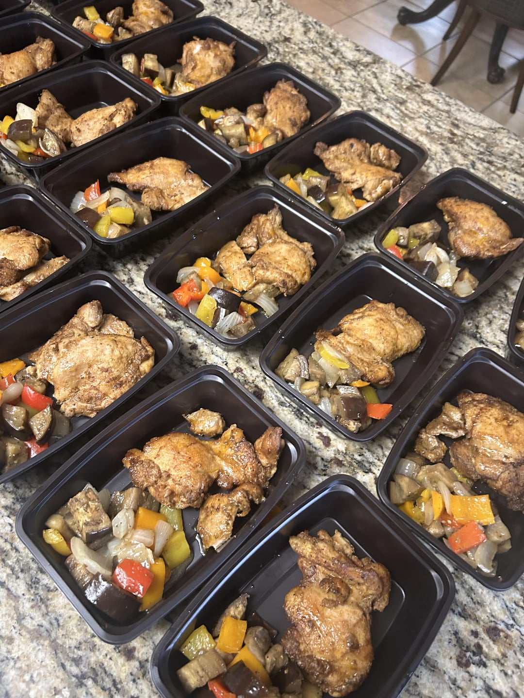 Mediterranean spiced chicken thighs with roasted eggplant and vegetable medley