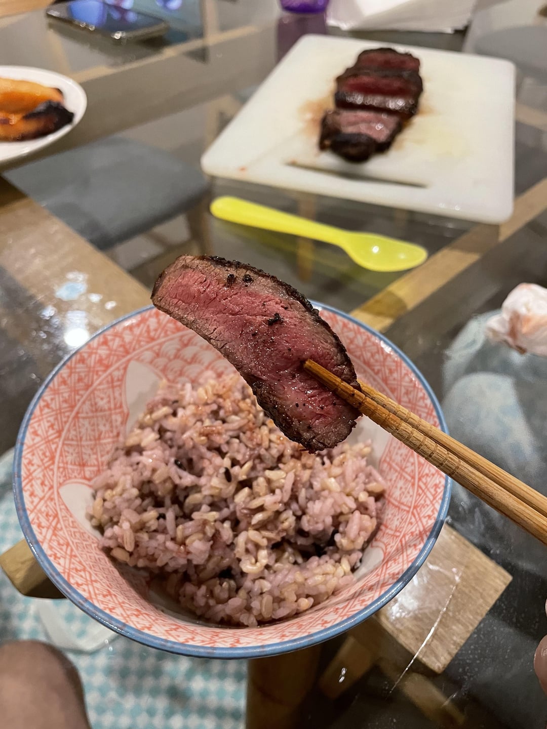 Looks nice inside besides being burnt to all hell lmao. I like more medium than rare. Makes me feel better about the first time I tried to guga a steak on charcoal.