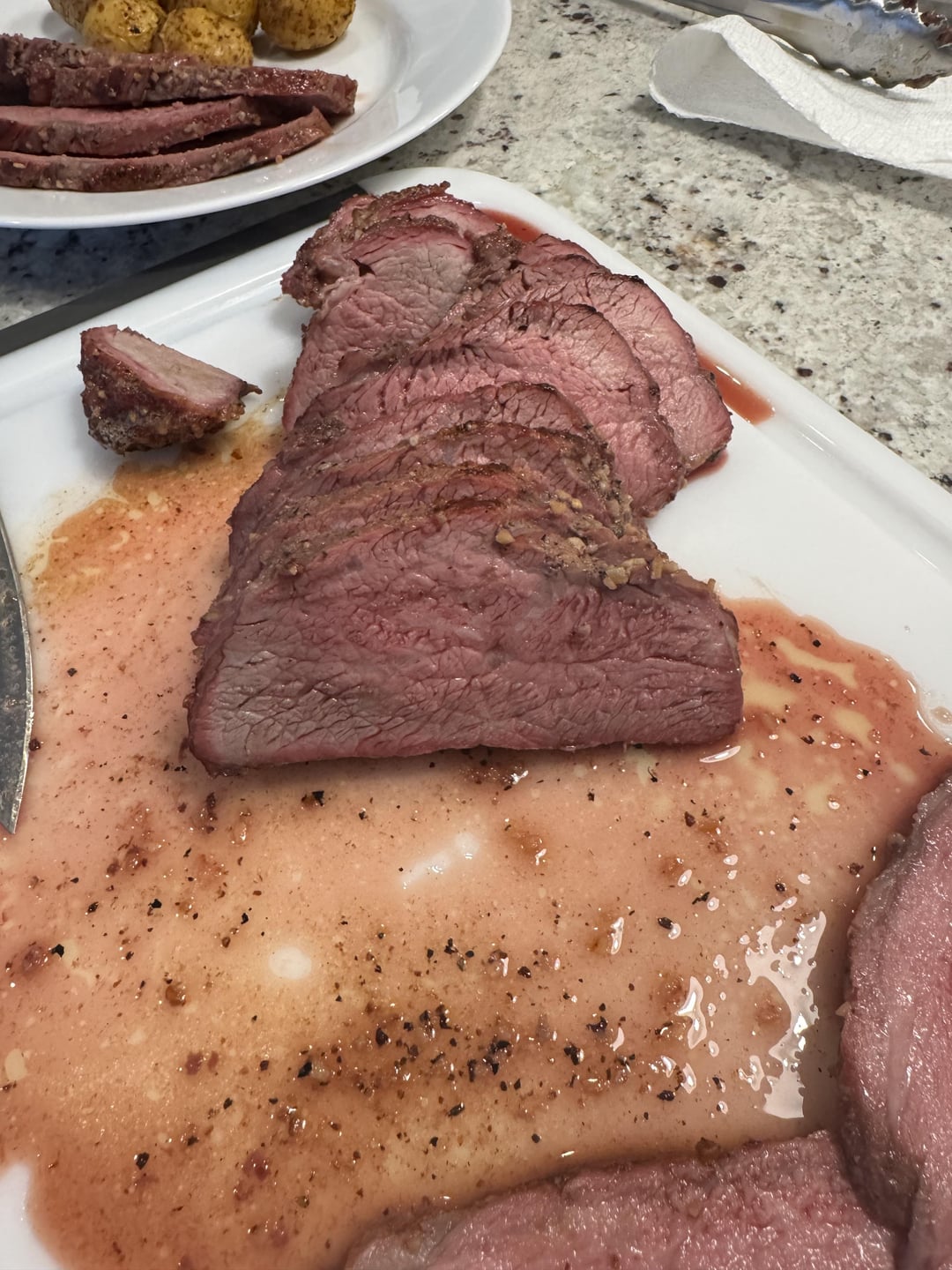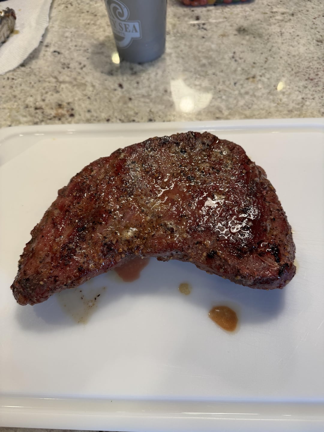 First time smoking a tri-tip. Kinder's SPG rub. 275° till 130° internal. Brought to the stove to sear.
