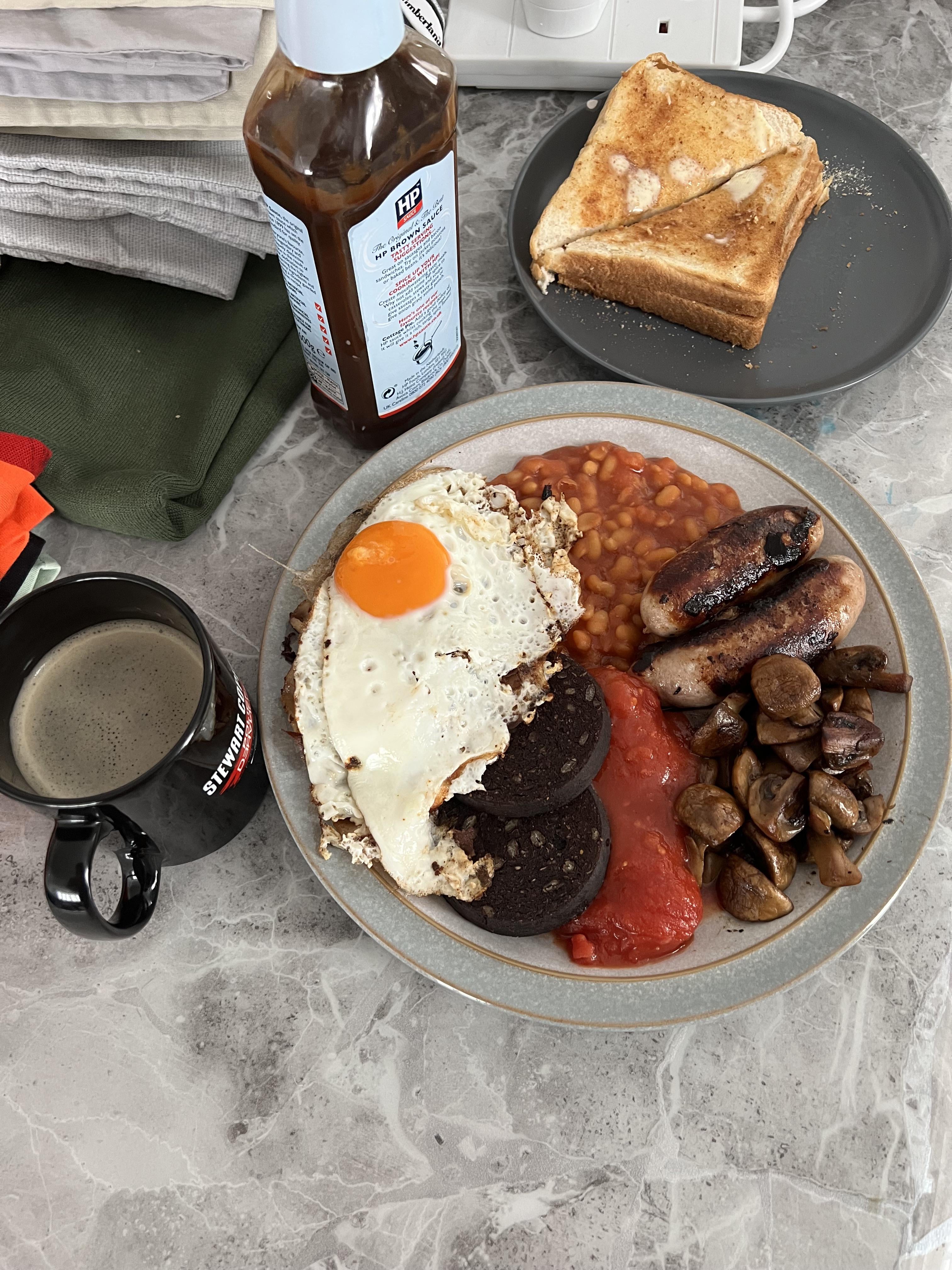 There is 2 eggs, had to stack for space reasons. There is also 2 bacon under the eggs. Need a bigger plate by sam_j_ryan Write A CommentYou must be logged in to post a comment.