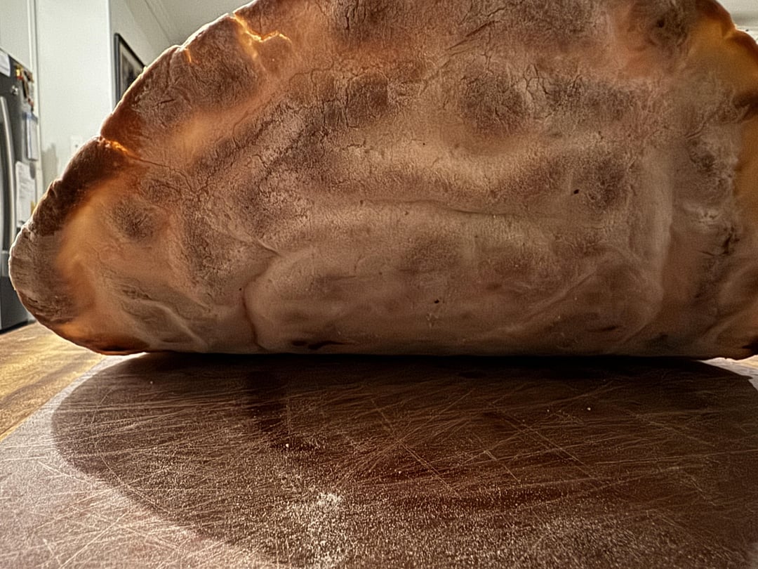 Mixed everything together in a mixer with a dough hook for 10-15 min. Cut dough in half and balled. Let sit on my counter covered with plastic wrap for approx 7-8 hours. Oven @ 550°. Used a heavy steel cookie sheet that i hijacked from my last chef job & let that heat in the oven.