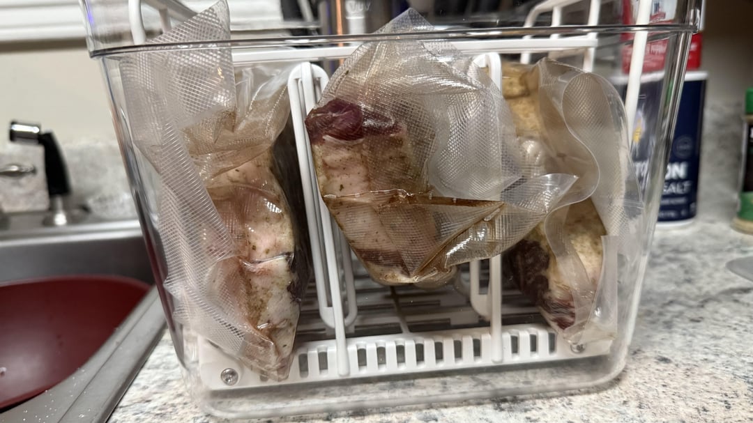 Just recently made my jump from Instant Pot sous vide to the real deal and had a question. I bought a 12qt Lipavi as well as their anti float non-plated rack. I also bought a Kitchenboss Circulator. To pair all of this want to break it in with 3 Ribeyes and noticed how close to the machine they are. I could maybe make my bags a little smaller and tighter to the steaks, but wasn't sure if this was using too much room?