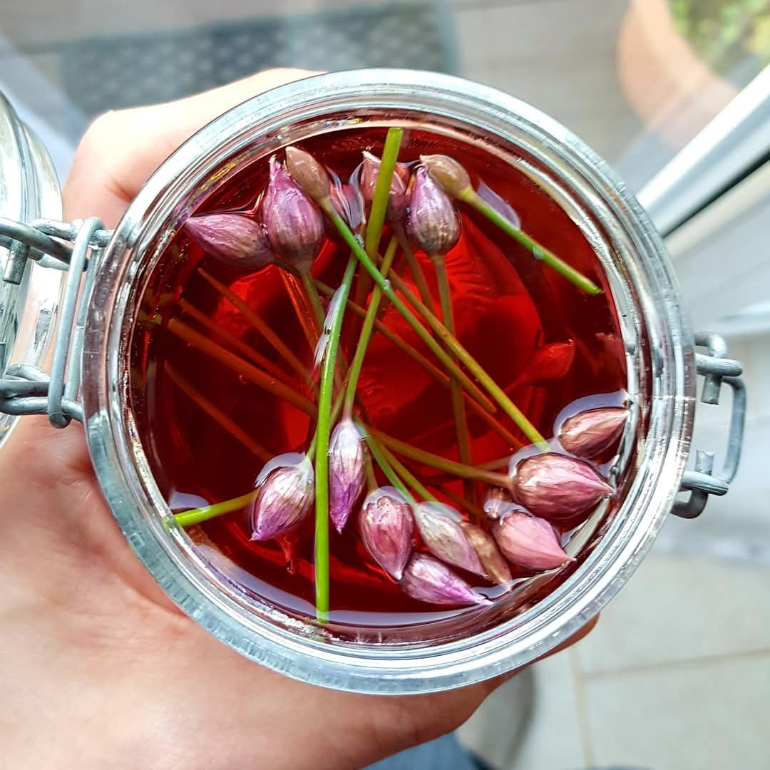Picked just before blossoming and pickled in a mild red onion pickling liquor. Packed with full on onion flavour, great with…anything. Even the raw petals are really tasty.
