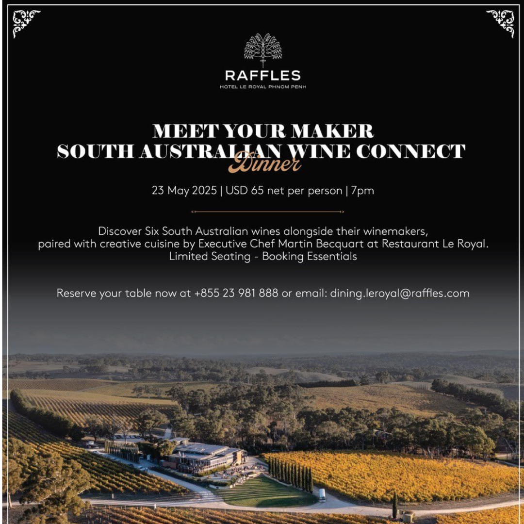 Attendees will experience a carefully curated evening of wine and cuisine, with the wines complemented by a specially designed menu from Executive Chef Martin Becquart. This fusion of refined food and fine wine highlights both the craftsmanship behind South Australian wine and the growing appetite in Cambodia for quality international dining experiences.