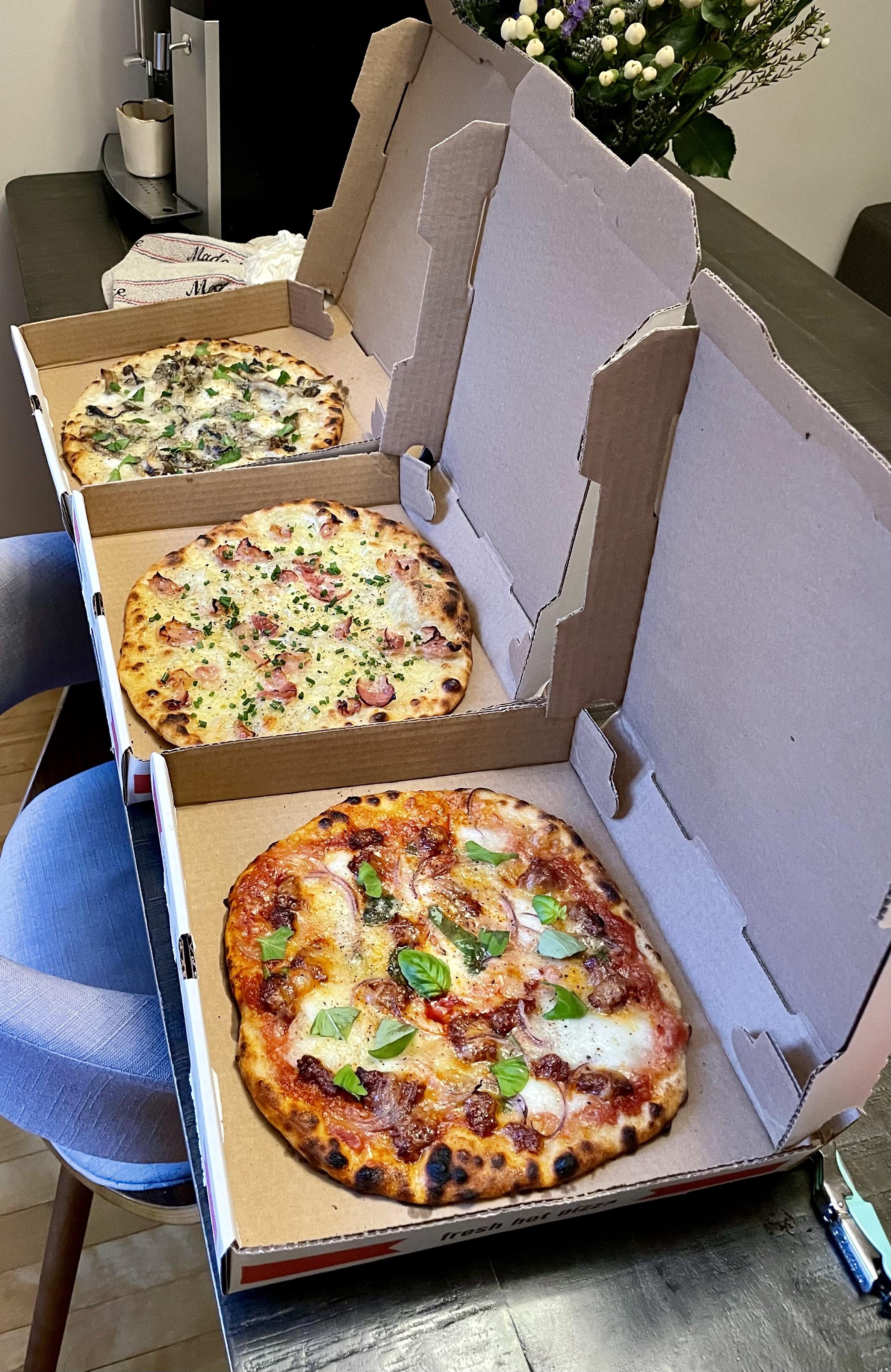 Thin crust aka my dough didn’t rise as I had hoped because Canada and old yeast – nduja/red onion (love how the nduja bakes almost like meat sauce), flammekueche (bacon, crème fraîche, gruyère) and funghi with shallot cream. Used the Breville Pizzaiolo. Baby enjoyed a nice cup of breast milk. I used Ken Forkish’s Biga pizza dough.