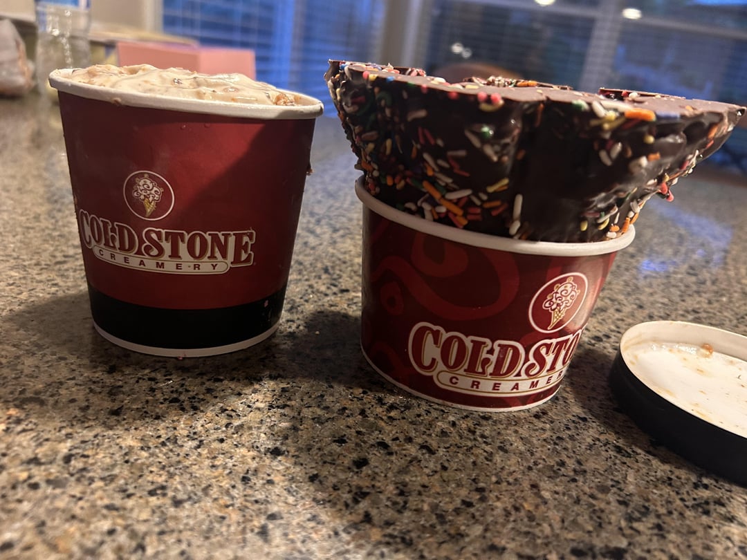 I don’t go to Cold Stone often at all, but their advertisement for the nutter butter flavor drew me in. But I go wild with my creations, so this is what I made –