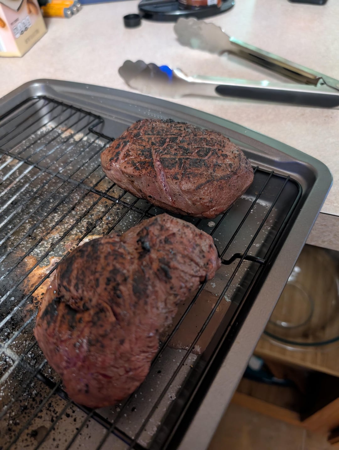 and my meat is in this pan from Ikea [https://www.ikea.com/ca/en/p/koncis-roasting-pan-with-grill-rack-stainless-steel-10578133/](https://www.ikea.com/ca/en/p/koncis-roasting-pan-with-grill-rack-stainless-steel-10578133/) I was using a stainless steel frying pan but the pan would heat up and cook a gray band in my meat.