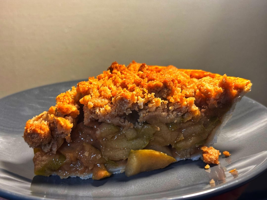 That looks great. I’m not sure how you managed to use 10 cups of apples & get pie cooked through without burning crust. Maybe the trick is to use a crumble crust instead of pastry on top. I love the filling ratio, it looks full & lush so I’m gonna try to duplicate this myself. Also, I’ve always used 3 Tabs. of flour in filling instead of cornstarch so maybe that will make a difference. It takes a village to raise a good pie!