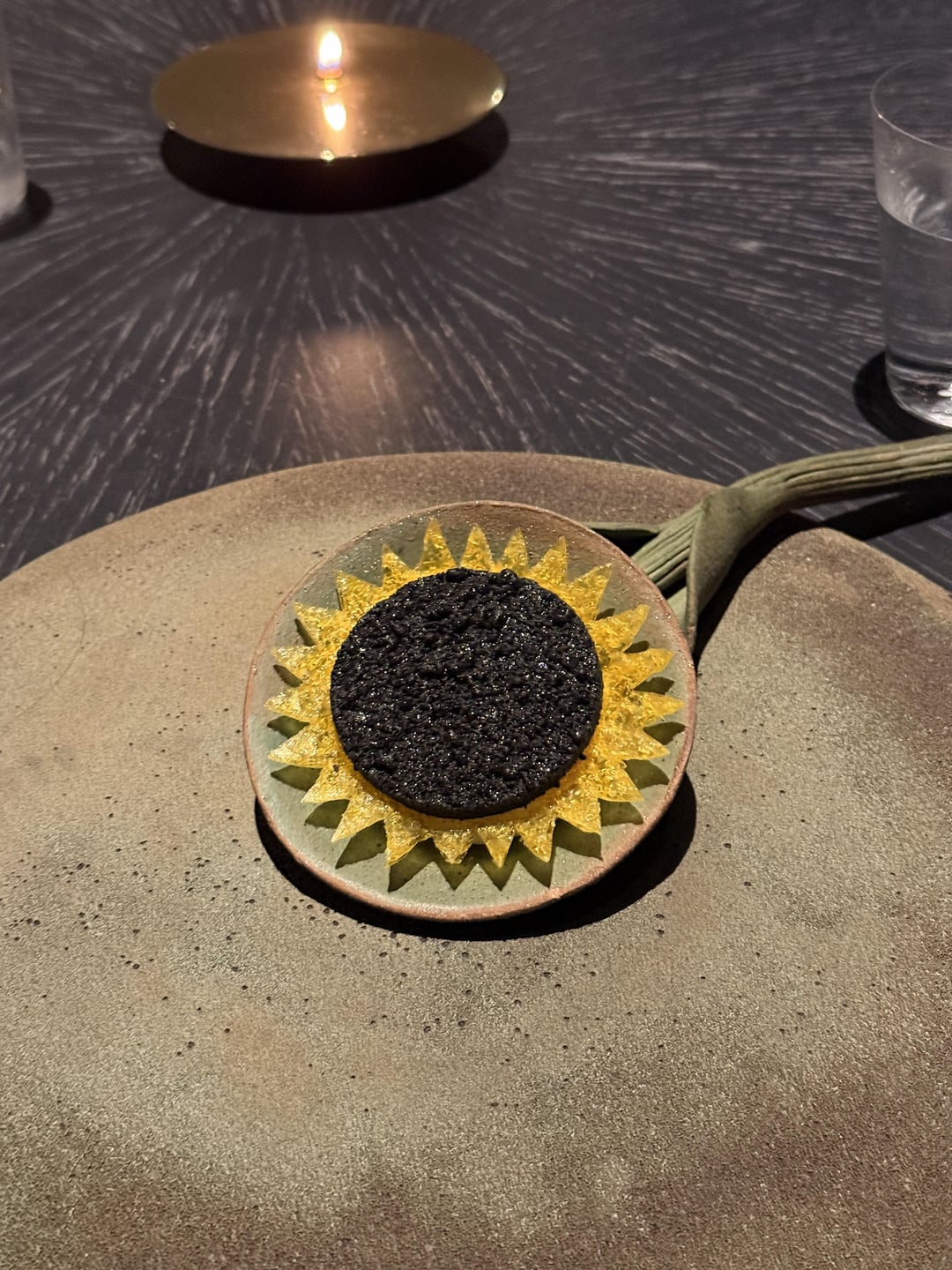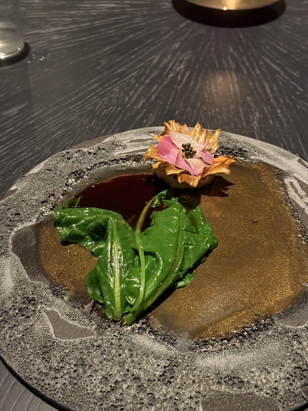 Had a very unique, precise experience at Delta. Every bite was surprising and delightful. Standouts were the first “edible scallop” (perfectly cooked scallop, in between crispy potato chips) which cycled through four distinct seafood flavors for me, the second “flower” which was kind of like a pasta ravioli dish, the fourth “leaf” which was a dehydrated pear with mushroom and oyster inside, and the final “sunflower” dessert which was a mind-blowing combination of sunflower seeds, crunch, and cream (probably one of the best desserts I’ve ever had). Oh, and the bread (shaped like a mushroom) was amazing too, paired with their creamy bone marrow dip. Unfortunately the mains were all misses for me as they were a bit heavy on the richness / umami, but it’s more to do with my taste than the objective quality.