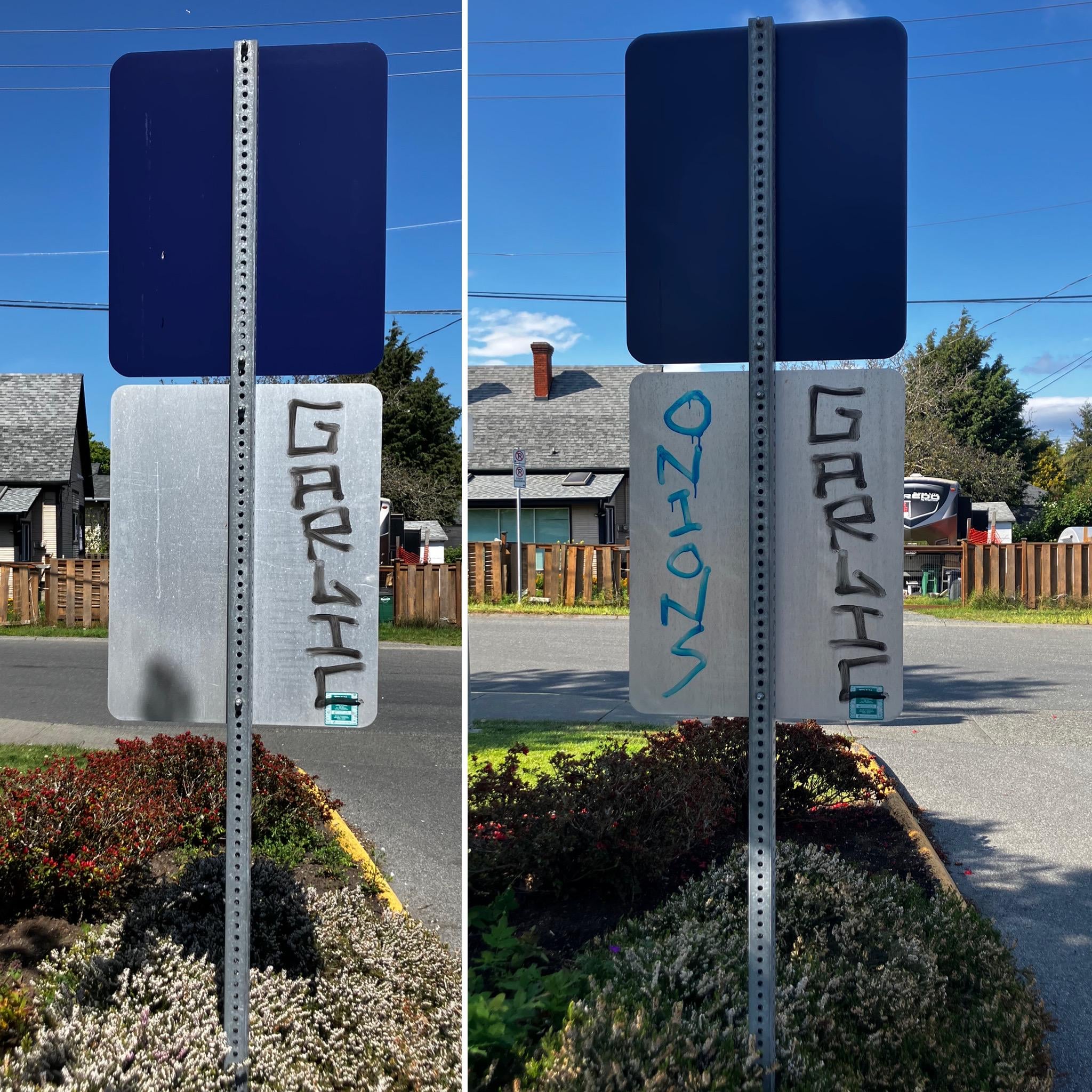 Three weeks ago, I found this graffiti. Today I went back with a mission to rectify/amend the situation. You’re welcome.
