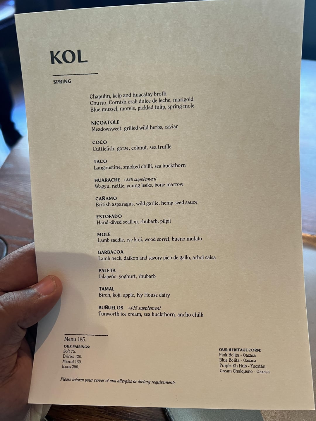 I love Mexican food, and went in with high expectations. Creative and playful menu with a focus on British ingredients and Mexican heritage corn, with some risky decisions (not all of which worked well, unfortunately).