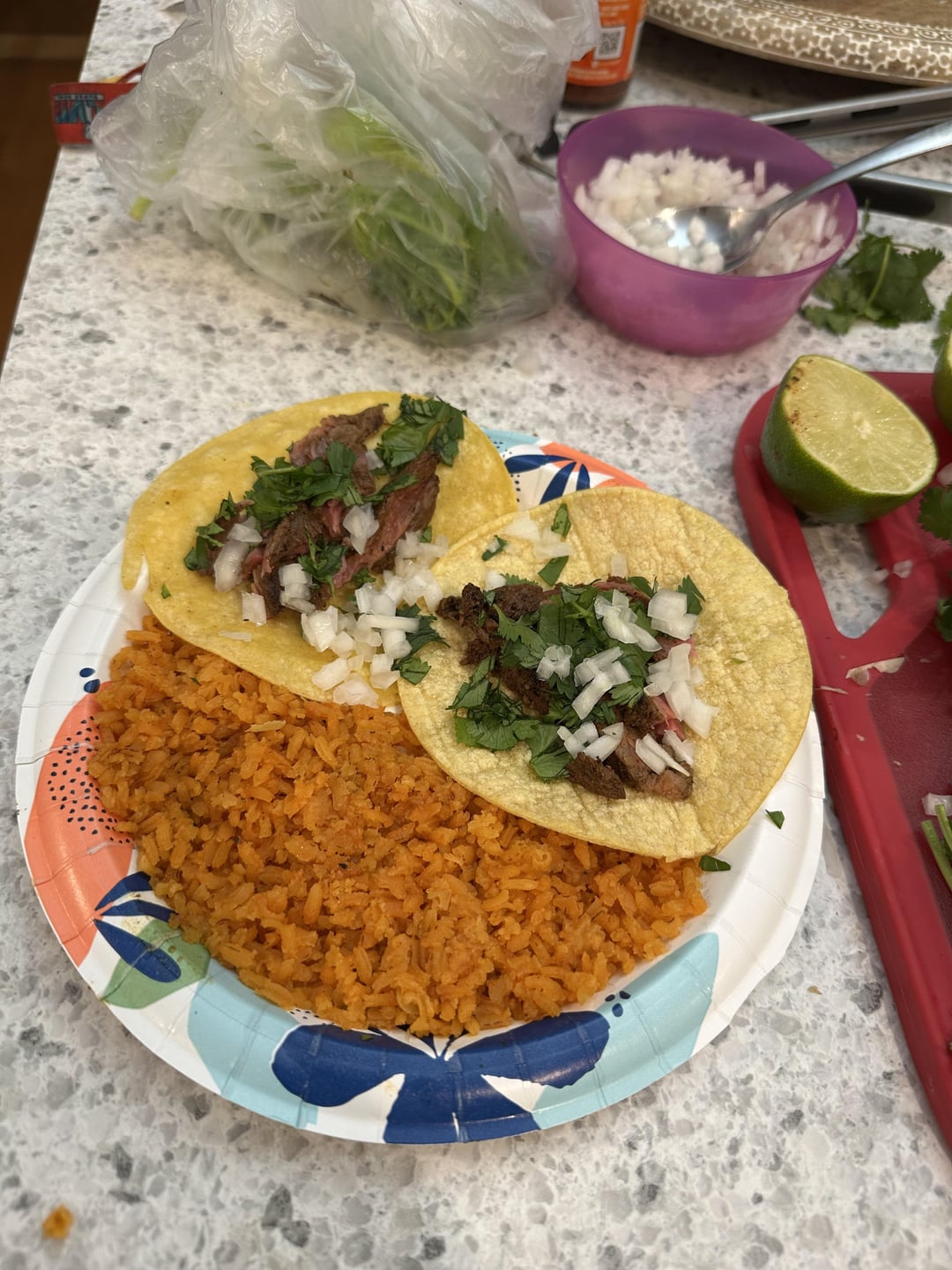 Partnered up with my Mexican mother in law. She made the rice for us and I did my first attempt at cooking Carne Asada.