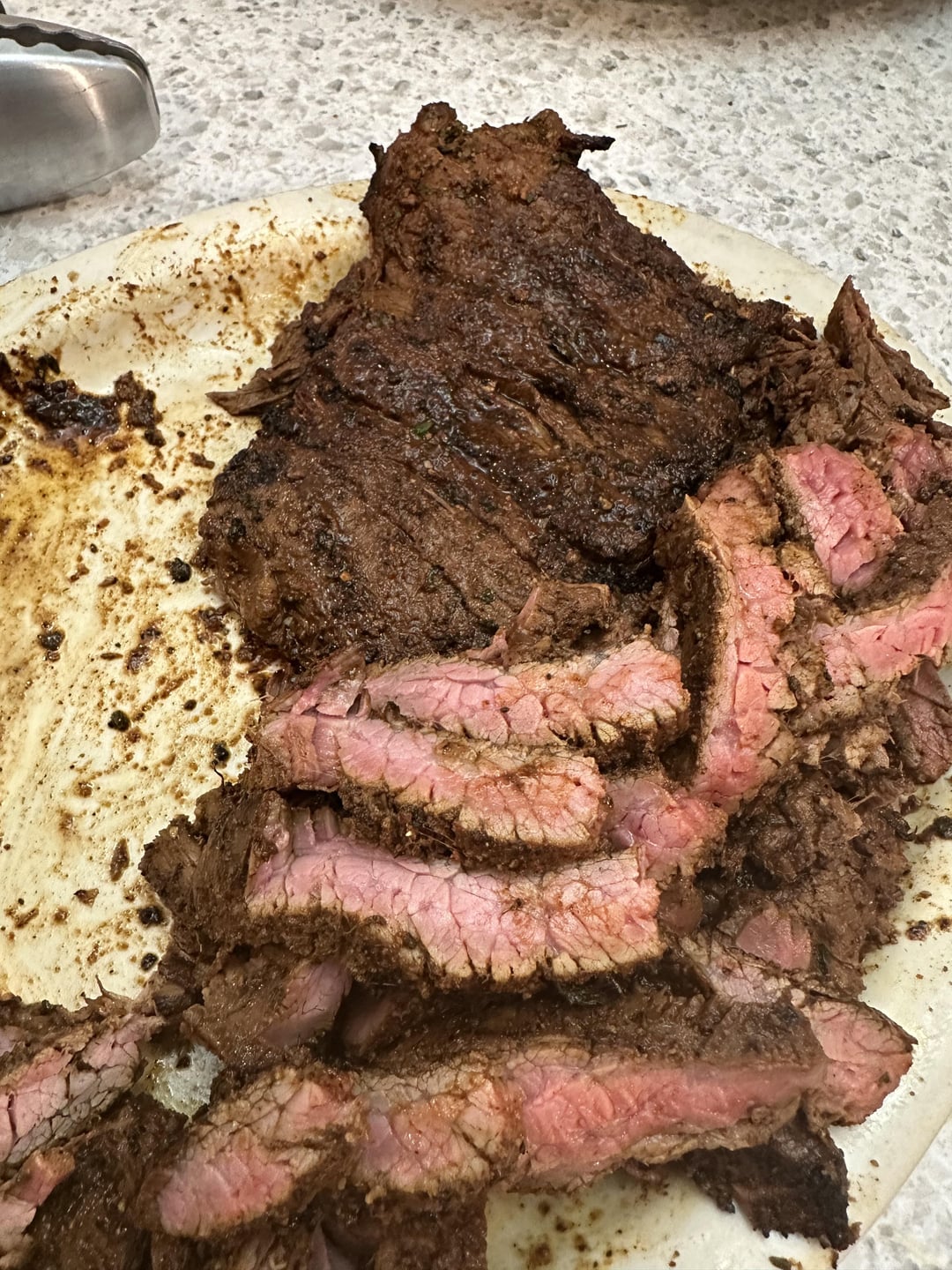 Looks great, the only thing I’d do differently is slice it thinner, but that’s just my preference. I go as thin as possible, against the grain, and at a 45 degree angle down the cutting board. Removes any chewiness that can come with skirt. Basically shaved slices is how I like it.