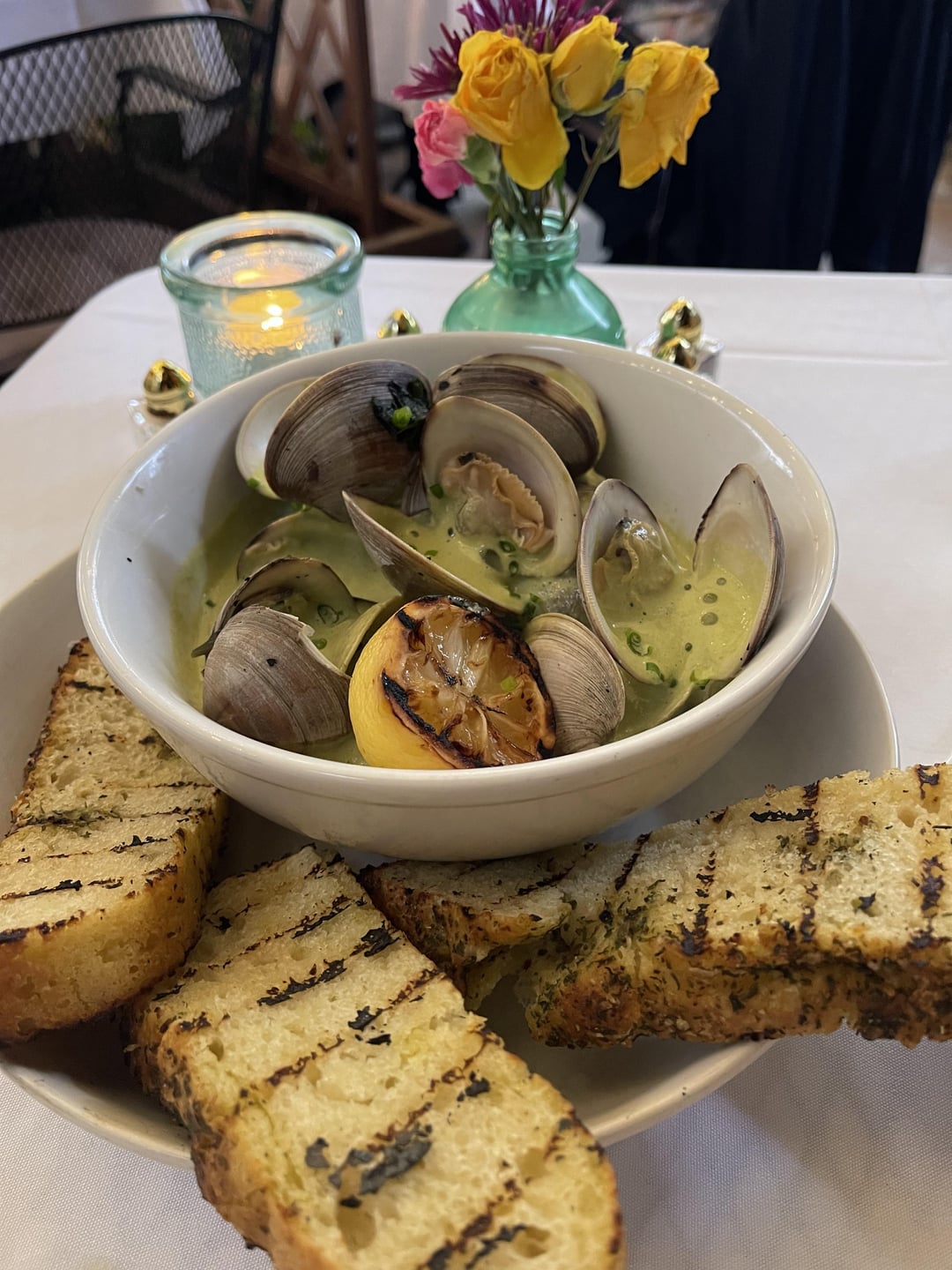 Next up was our seafood course. The soft shell blue crab with snap peas, pea shoots, and spicy kewpie mayo was one of the best things we’ve eaten so far this year. My husband loves softies and he said it might be the best one he’s ever had. The NC clams were in a vibrant ramp broth and we definitely finished all of it with the grilled bread.