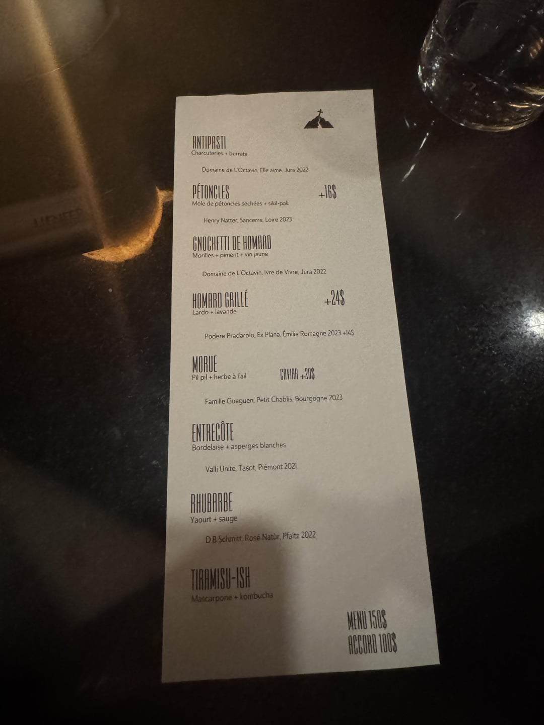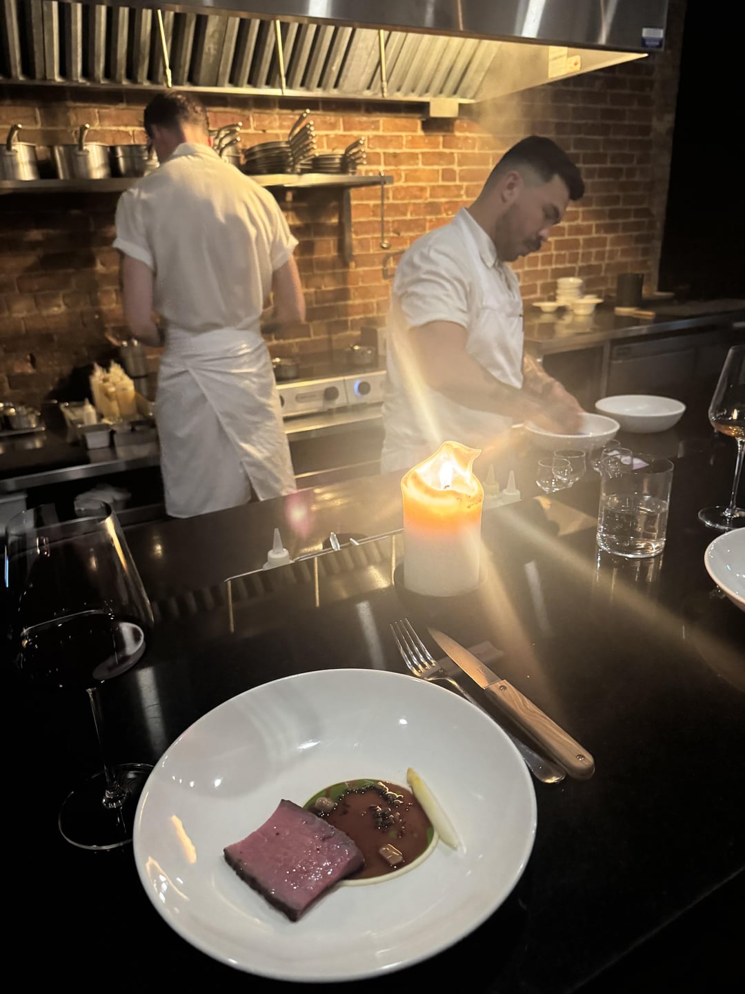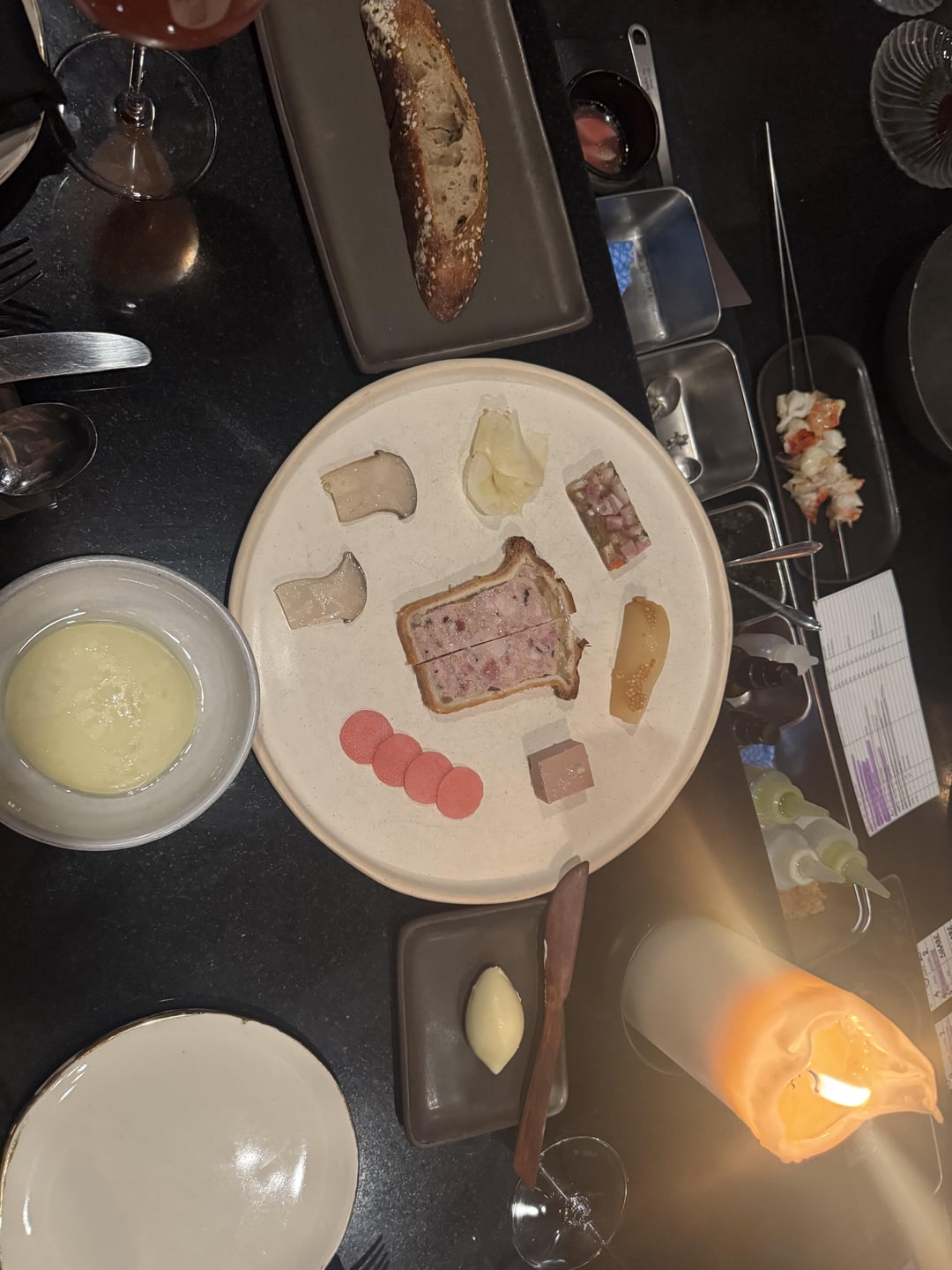 Let me start by saying this: it was expensive. BUT everything was absolutely phenomenal from the food to the wine, the service and the ambience. The wine list was unique and daring, and the sommelier came to describe each glass. They changed the cutlery for each course and each piece was whimsical and sophisticated. There were candles and punk rock posters everywhere.