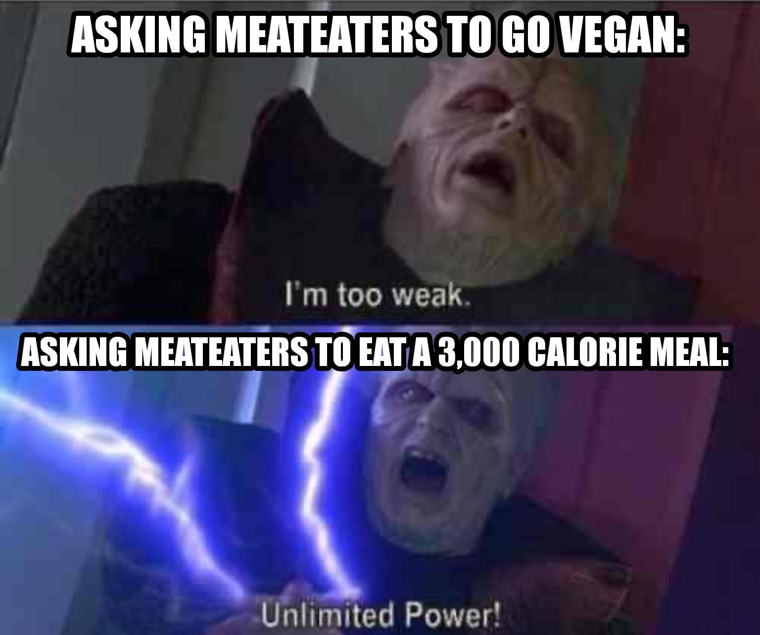 Asking Meateaters to Go Vegan versus Asking Meateaters to Eat a 3,000 Calorie Meal