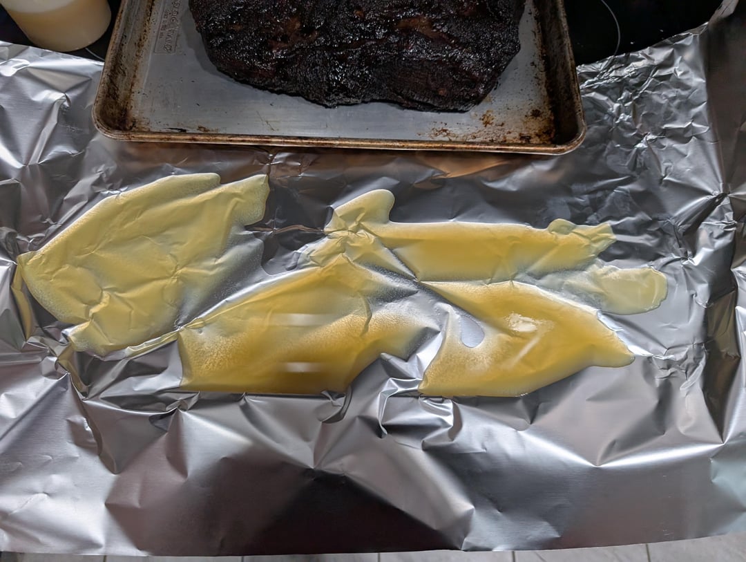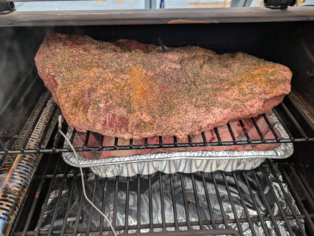 Got some prime briskets from a distributor, seasoned with pepper, then salt, then light MSG, Garlic, and turmeric. For smoking, I filled a 12 inch pellet smoker (no clue what they're really called) and started that while the Traeger was started. CLosed it and used Super Smoke to get it really smokey. Under the brisket I filled a tray with the drippings to get some tallow. Left it around 200-225 for most of the time.