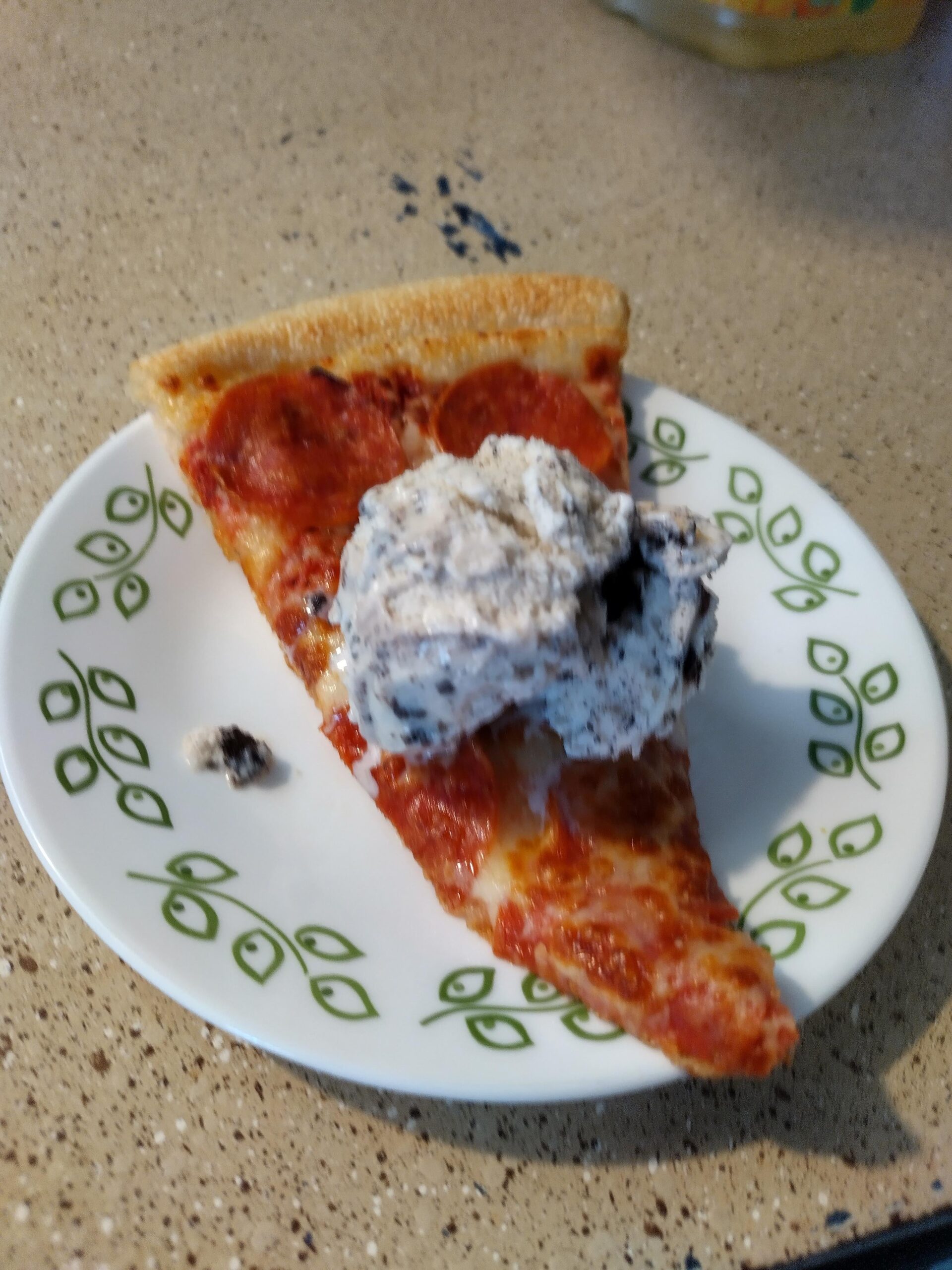 Not often I get to see a crime against pizza and ice cream in one photo. Guilty as sin!
