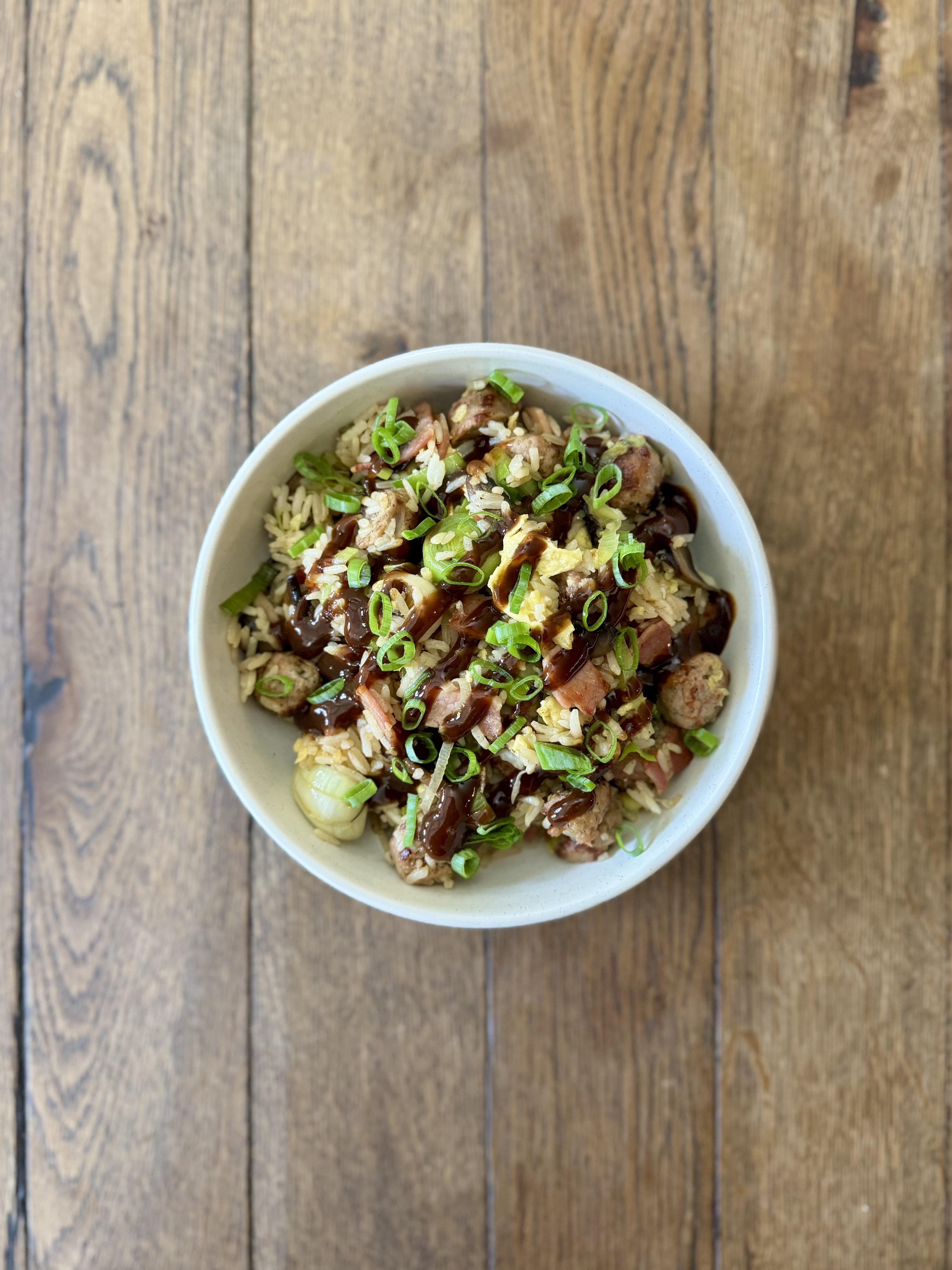 Smoked bacon, farmhouse sausages, mustard scrambled eggs, mushrooms, leeks, and I made a stir fry sauce with English mustard, HP sauce, and Worcestershire sauce. by csswizardry Write A CommentYou must be logged in to post a comment.