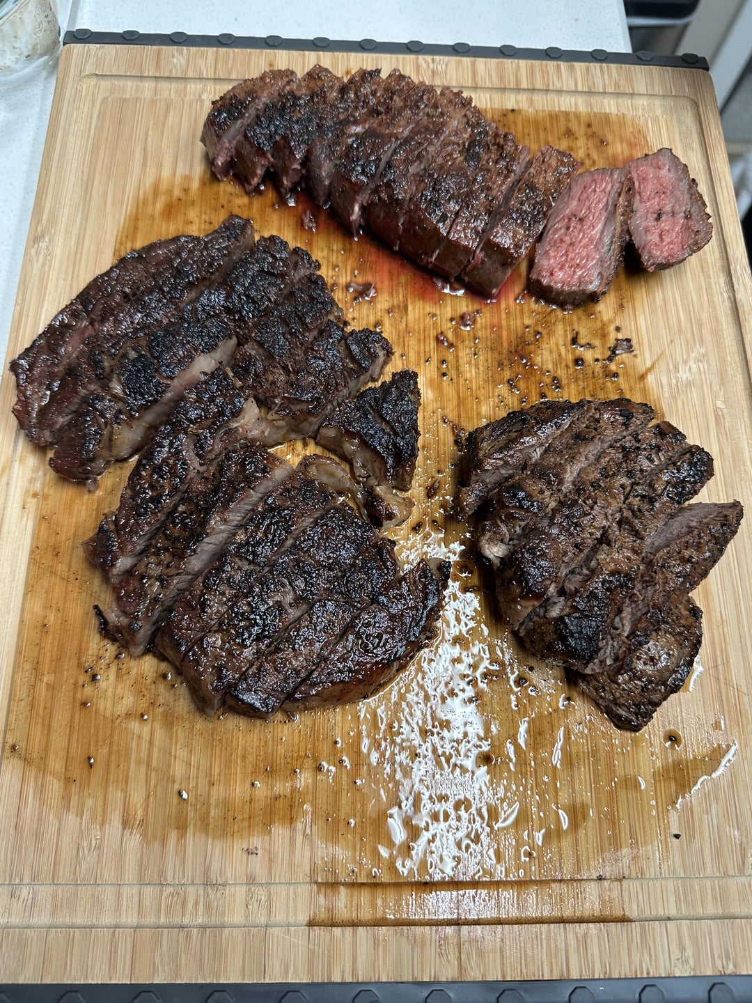 Strip was perfect, filet and ribeye a bit over cooked. Still great overall.