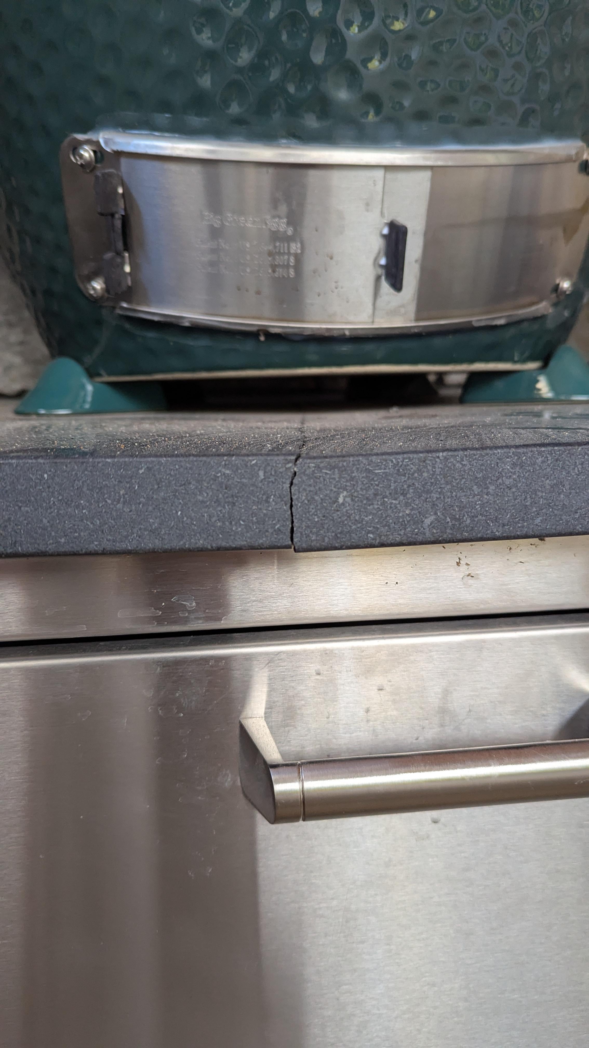 My outdoor kitchen was just finished a couple weeks ago. Tonight we used the egg to cook pizza for the first time, temps got up to 700F. This is definitely the hottest cook I've done so far (maybe it's just a coincidence). As I was cleaning up after I heard a really loud bang as if something had fallen over. I eventually figured out that the granite slab holding my egg had cracked. Has anyone else ever experienced this? Seems related to the high temp of the cook even though my egg is raised off of it with the ceramic feet. I'm obviously going to get this fixed but does anyone have suggestions about how to prevent this from happening again? I thought granite would be strong and durable enough…