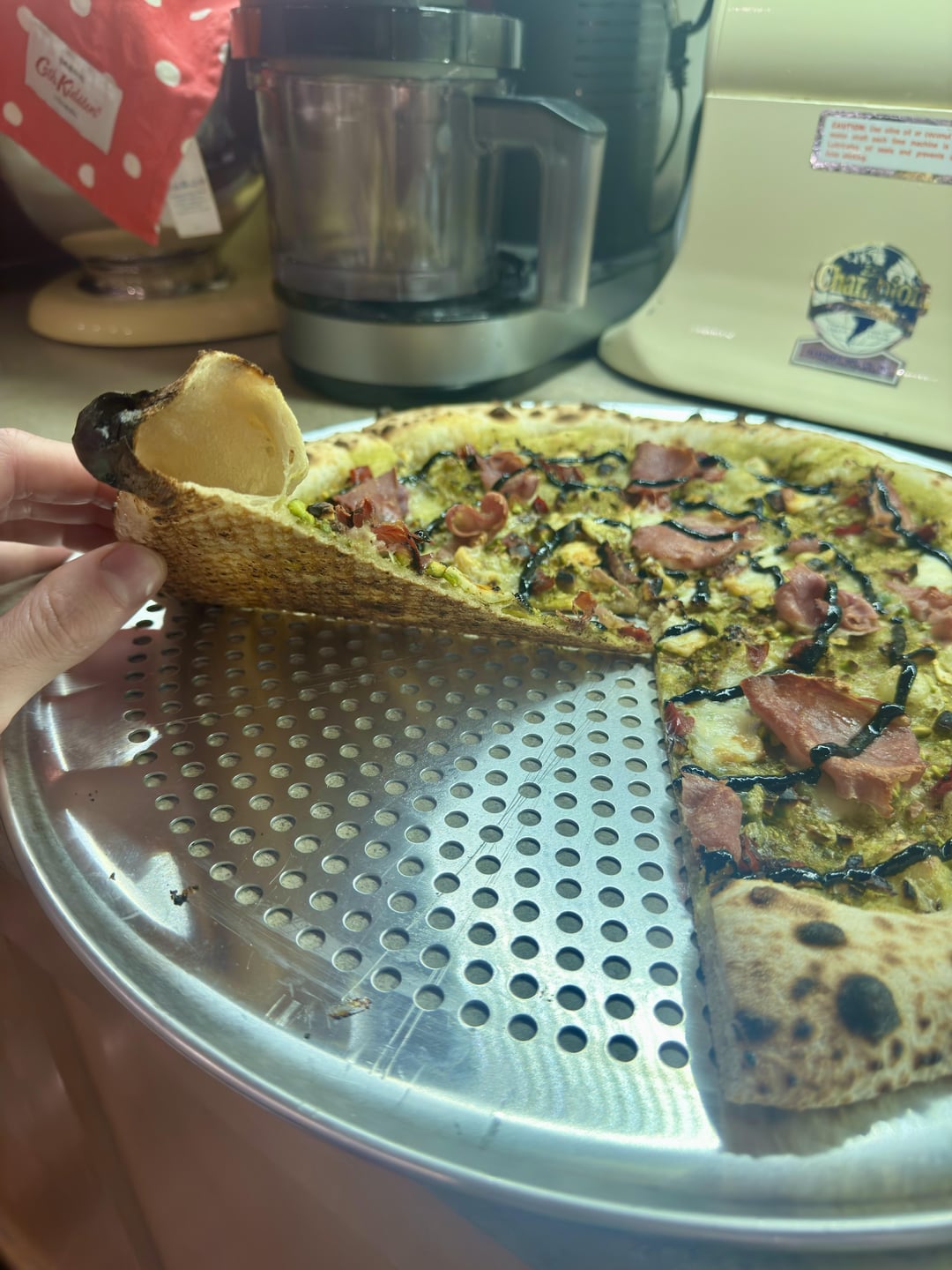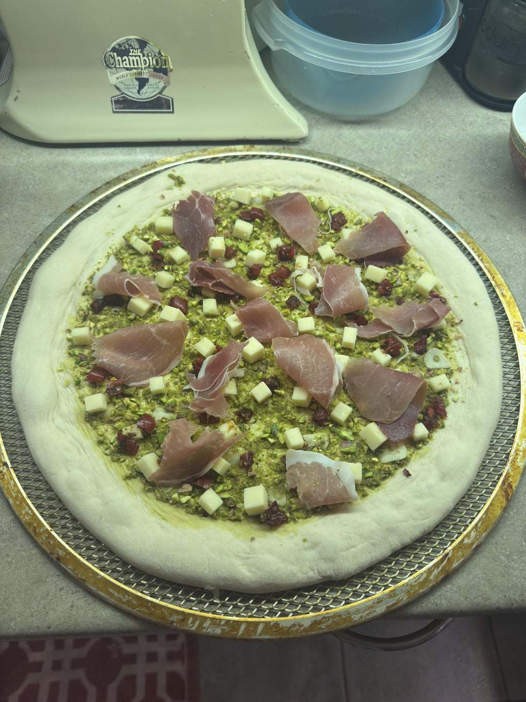 Crushed pistachios, crispy prosciutto, shaved garlic, diced bruschett’ified grape tomatoes, mozzarella on pesto, aged balsamic reductionby Born-Drawer-4451 2 Comments skylinetechreviews80 5 months ago Outrageous Thelastbaron23 5 months ago The dough looks great! When do you freeze it and when do you take it out? Do you transfer it to the fridge or just directly out? Also, how long was it frozen for?Write A CommentYou must be logged in to post a comment.