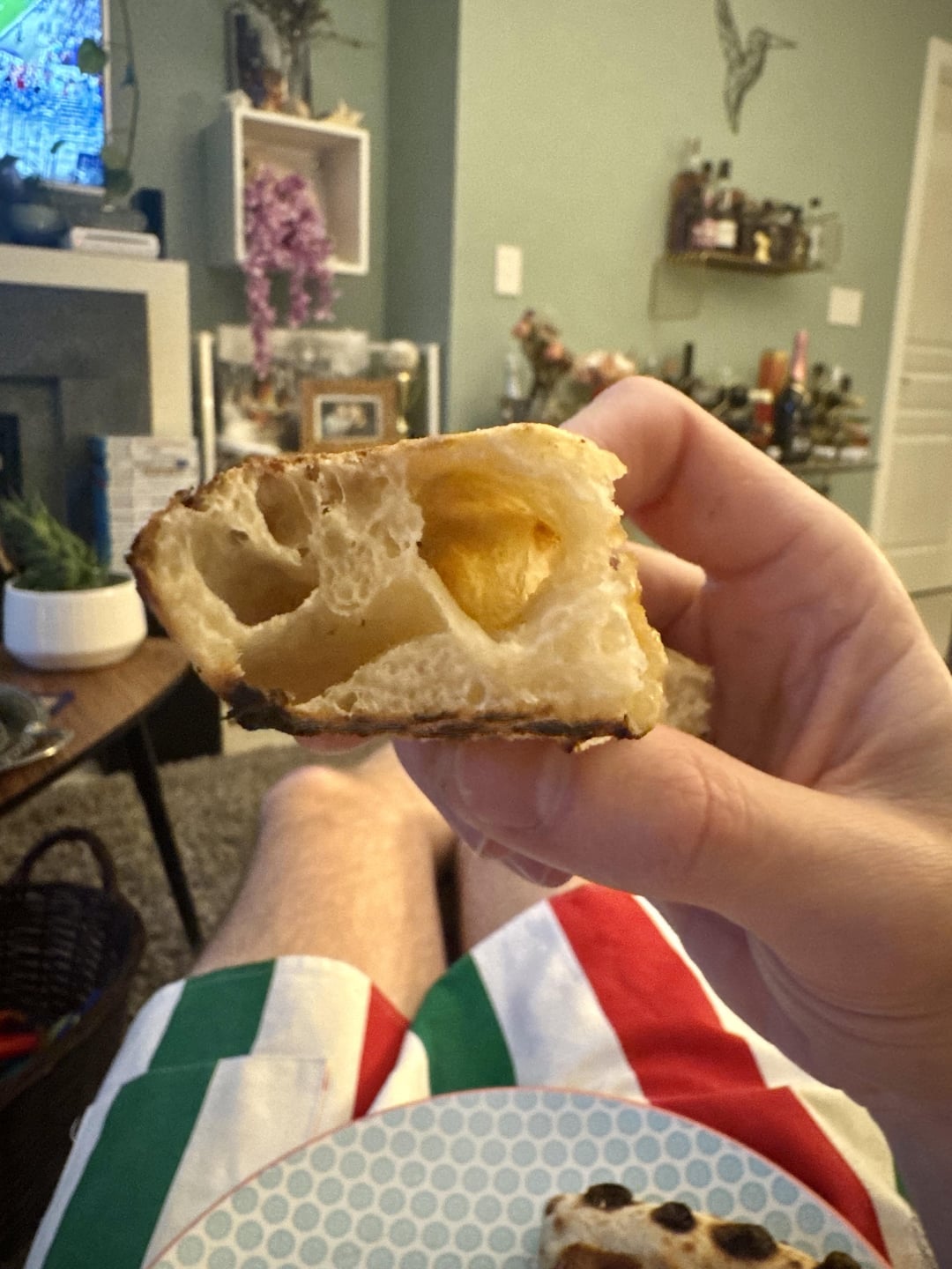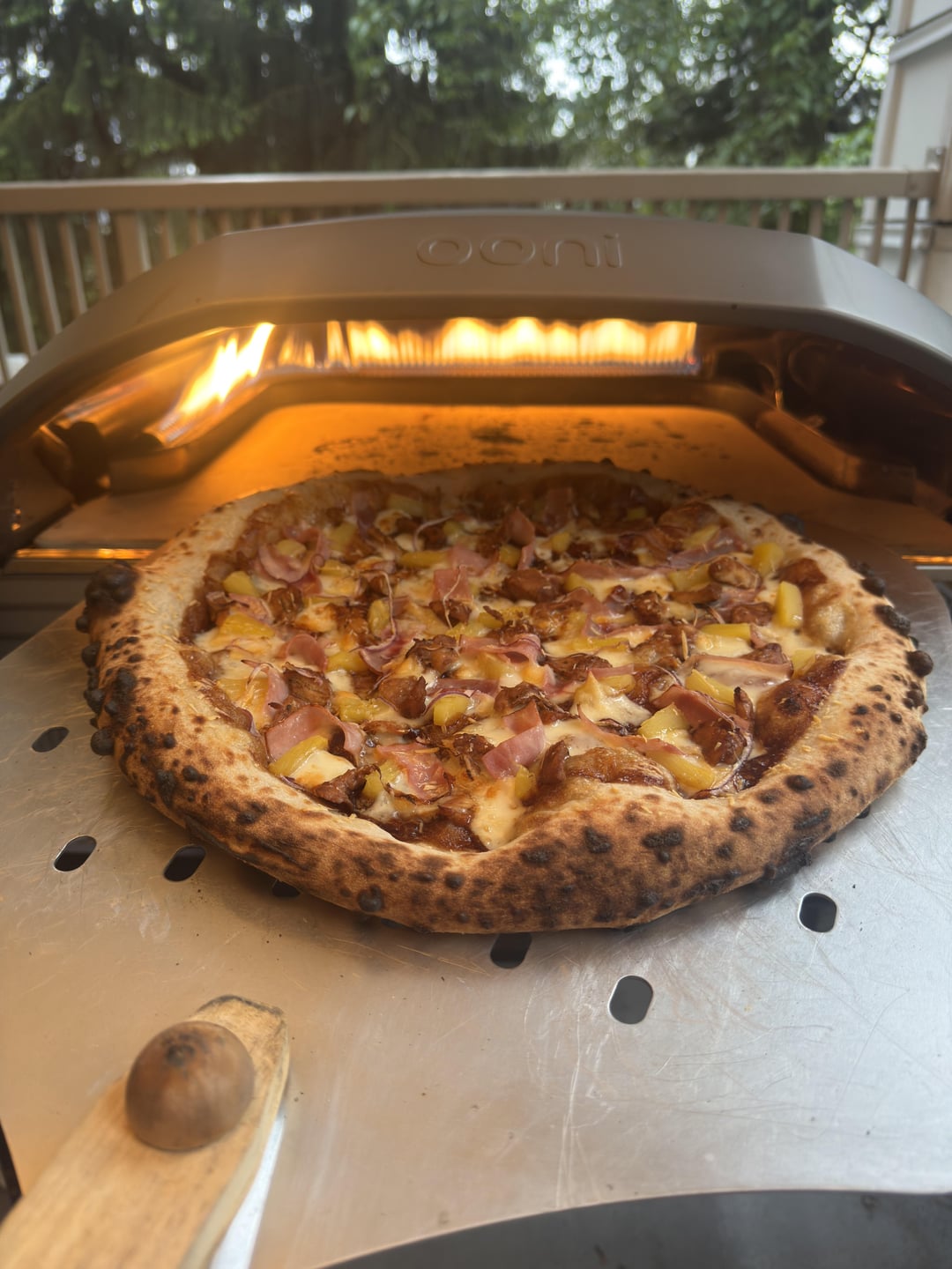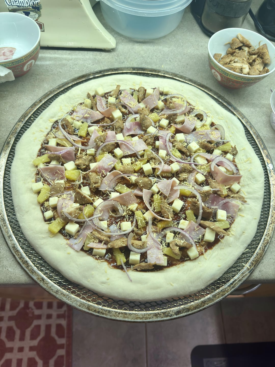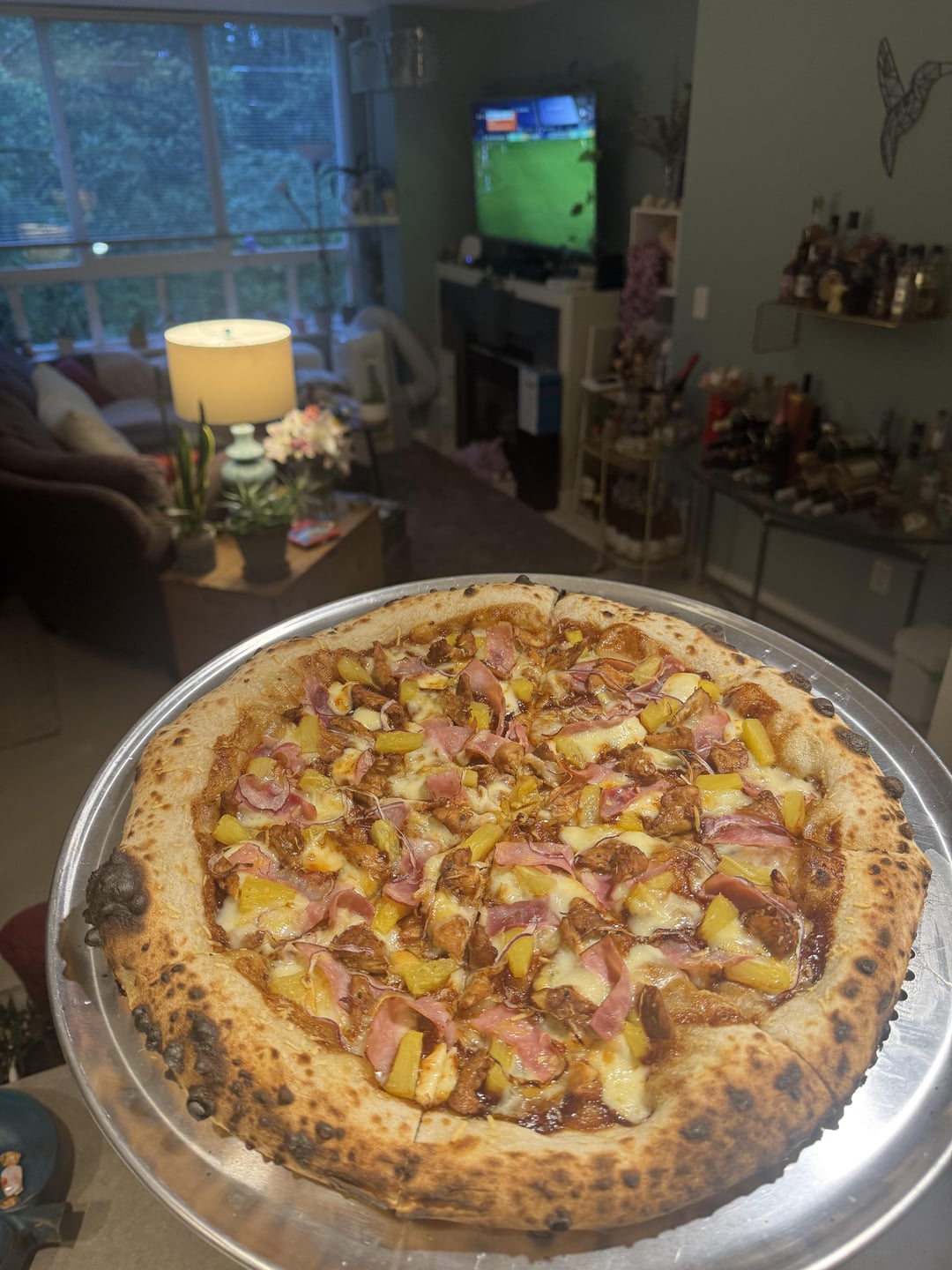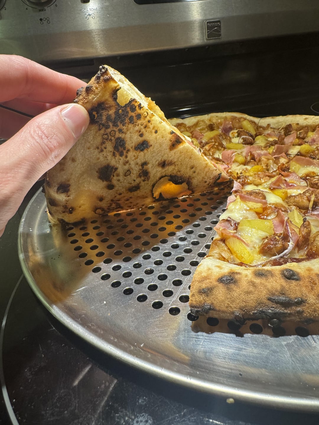 Chicken, ham, pineapple, shaved red onion, mozzarella and sprinkled cheddar on whisky infused bbq sauce. Thawed and risen for 6 hours, cooked 90 seconds turned 4 times in a 950f preheated Ooni koda 16 It was incredible somehow 😭by Born-Drawer-4451 5 Comments twotwo4 5 months ago Did you cook it on the screen? LordOfTheFelch 5 months ago What’s your process for freezing dough? At what point do you put it in the freezer and at what point do you take it out? batk0in 5 months ago Doggo validated 🙂 GlitterPrins1 5 months ago I need those shorts for pizza making! you_aint_seen_me- 5 months ago This is the wayWrite A CommentYou must be logged in to post a comment.