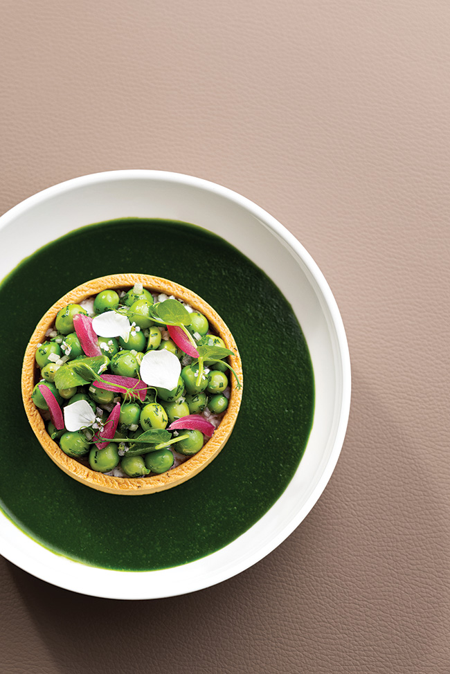 Things looked up once we were seated, however. Our waiter was smart and attentive, and usefully detailed the scrupulously local and seasonal ‘concept’ of the three-course €69 lunch menu for a table in Coeur Brasserie, or centre of the dining room (rather maddeningly, you pay extra for a good view here – the same lunch menu overlooking the Seine is €95). We tried both of the offered starters, including a pleasant tomato salad with strawberries and smoked fish and grilled octopus (from the Seine, perhaps? Well no, but quite good in any event) with chickpeas and courgettes. Next up, pork loin with baby carrots and Île-de-France quinoa and chicken fillet with spelt risotto and summer vegetables, again pleasant. Both desserts were excellent – a vegan pavlova with red fruit, crushed pralines and elderflower and a soft chocolate cake with cocoa nib custard.