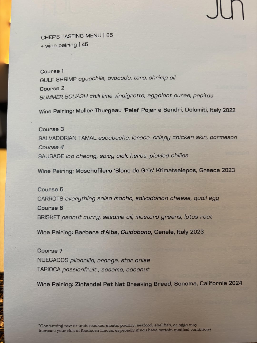 Fantastic and well priced tasting menu tonight @ Jūn. Ate at the bar bc I was OMO but each course layered upon the next with inventive use of ingredients and a build up of flavors. My taste buds were captivated.